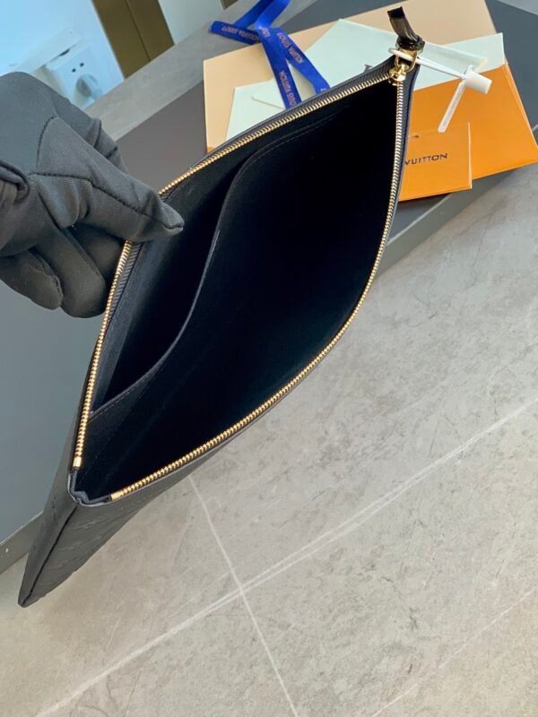 Crafted from supple Monogram Empreinte leather, this Louis Vuitton Daily Pouch (M62937) is an exceptionally functional yet modern accessory. It features the house’s iconic embossed Monogram pattern, offering a sophisticated texture and a luxurious feel.
