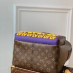 Make a striking statement with the reimagined Discovery Backpack from the 2021 Fall Collection. This standout piece takes the House’s classic brown Monogram canvas and elevates it with a bold, contemporary twist. The front of the bag features a vibrant, eye-catching arrangement of three-dimensional latex LV initials, boldly declaring a brand new, streetwear-inspired image for the iconic logo.