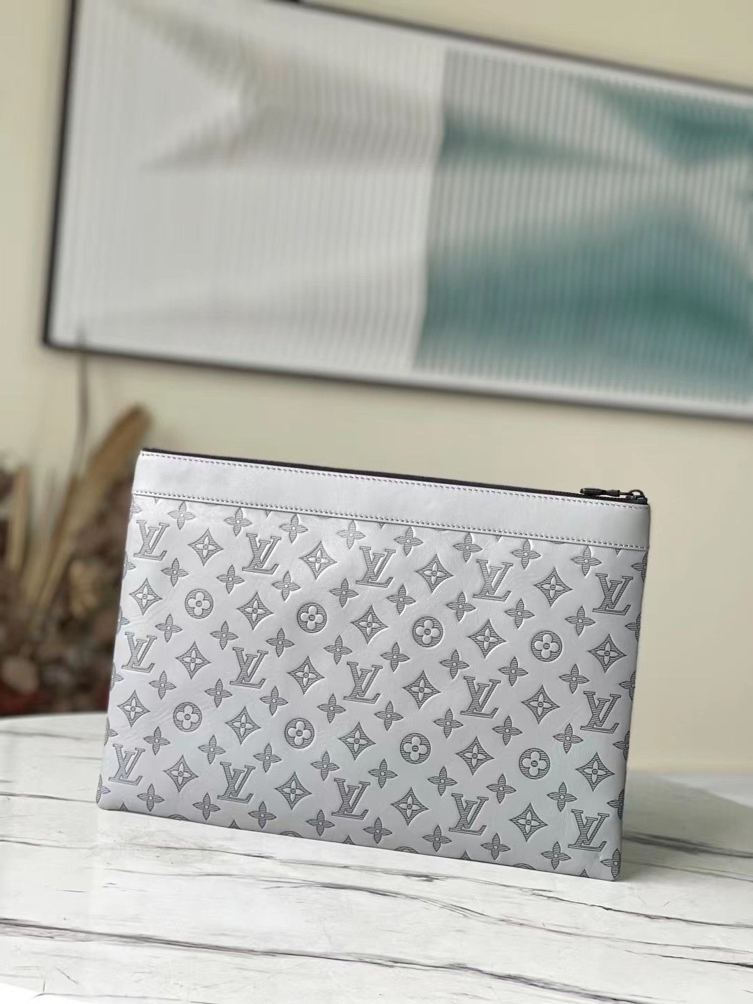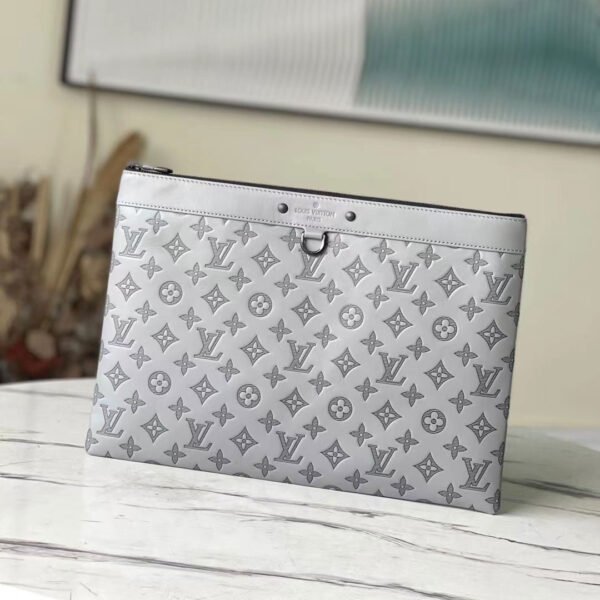 Sleek Sophistication for the Modern Professional Elevate your daily carry with the Louis Vuitton Discovery Pochette GM. Designed with a clean, minimalist silhouette, this large-format clutch is the ultimate fusion of contemporary style and practical utility. Crafted from exceptionally supple Monogram Shadow calfskin leather in a refined grey hue, it offers an understated yet unmistakably luxurious aesthetic.