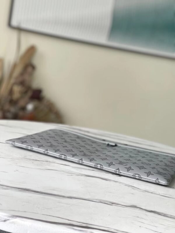 Louis Vuitton Discovery Pochette GM in Grey Monogram Shadow Leather Elegant Document Clutch 36cm