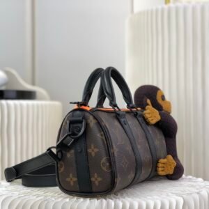 Key Features: Prominent oversized tonal LV signature logo, structured angular silhouette, elegant smooth leather top handle, matching leather luggage tag, fully detachable long leather shoulder strap for versatile wear.