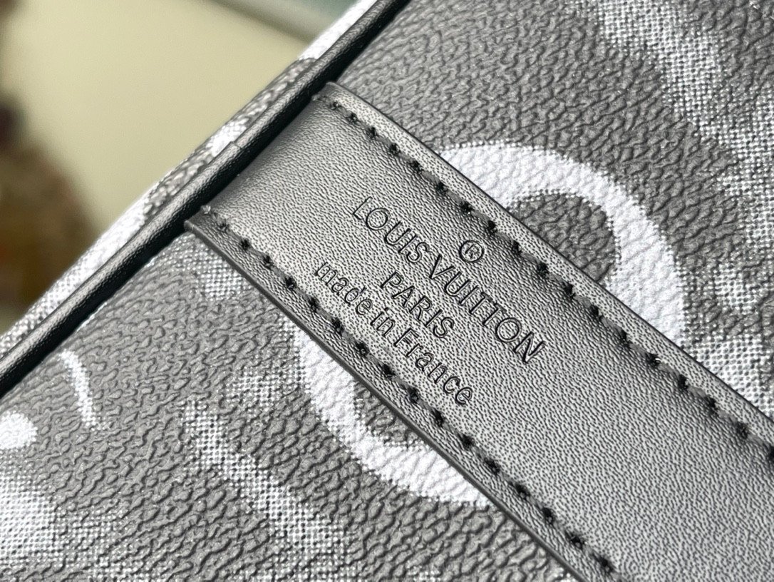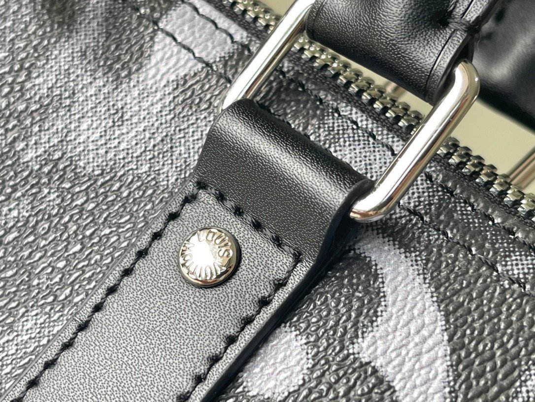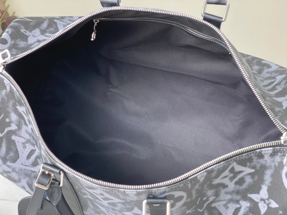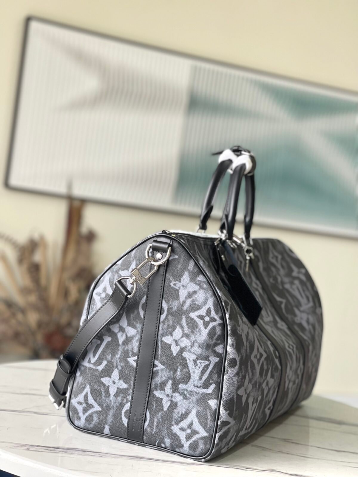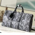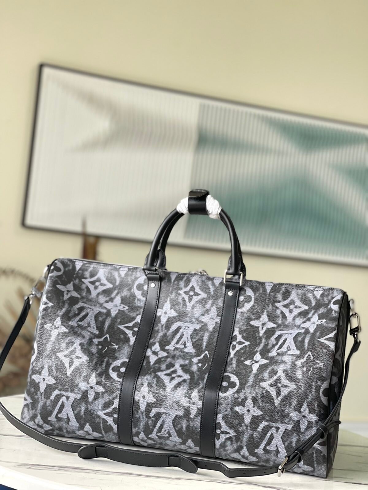 True to its reputation as the ultimate weekend bag, the Keepall 50 offers an incredibly generous capacity, making it the perfect choice for a short getaway or a stylish gym companion. It is masterfully finished with smooth black leather trim, sturdy rolled top handles, and a secure double-zip closure equipped with a signature LV padlock and keys. For effortless mobility, it includes a fully detachable and adjustable leather shoulder strap, allowing for a comfortable crossbody or over-the-shoulder carry.