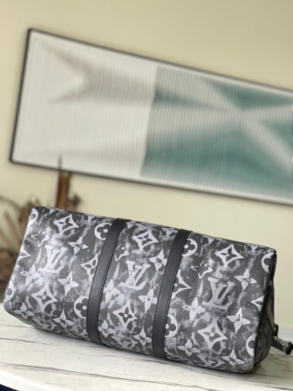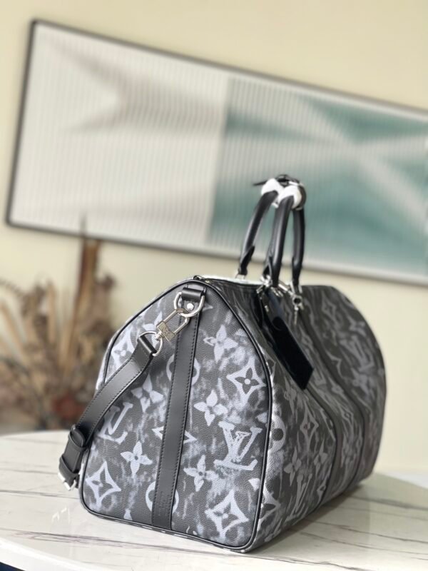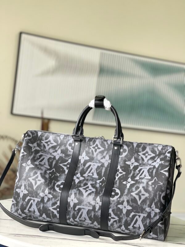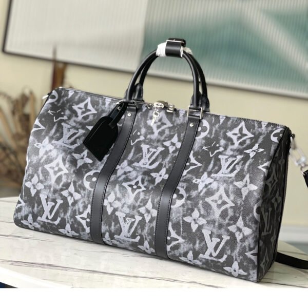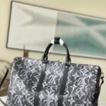 Redefine your travel aesthetic with the striking Louis Vuitton Keepall Bandoulière 50 in the exclusive Monogram Salt canvas. Taking inspiration from the aged, salt-treated denim techniques found in the house’s ready-to-wear collections, this piece offers a rugged yet refined texture that stands out in any terminal or lobby.