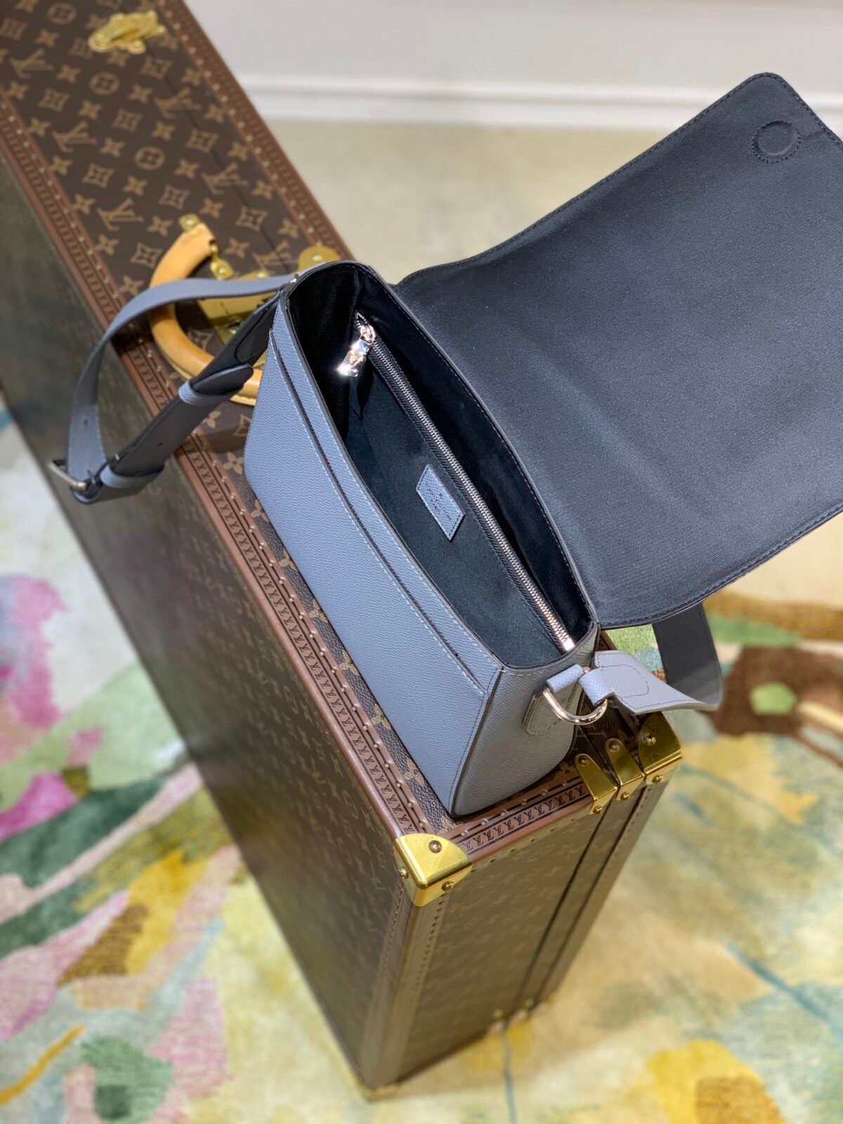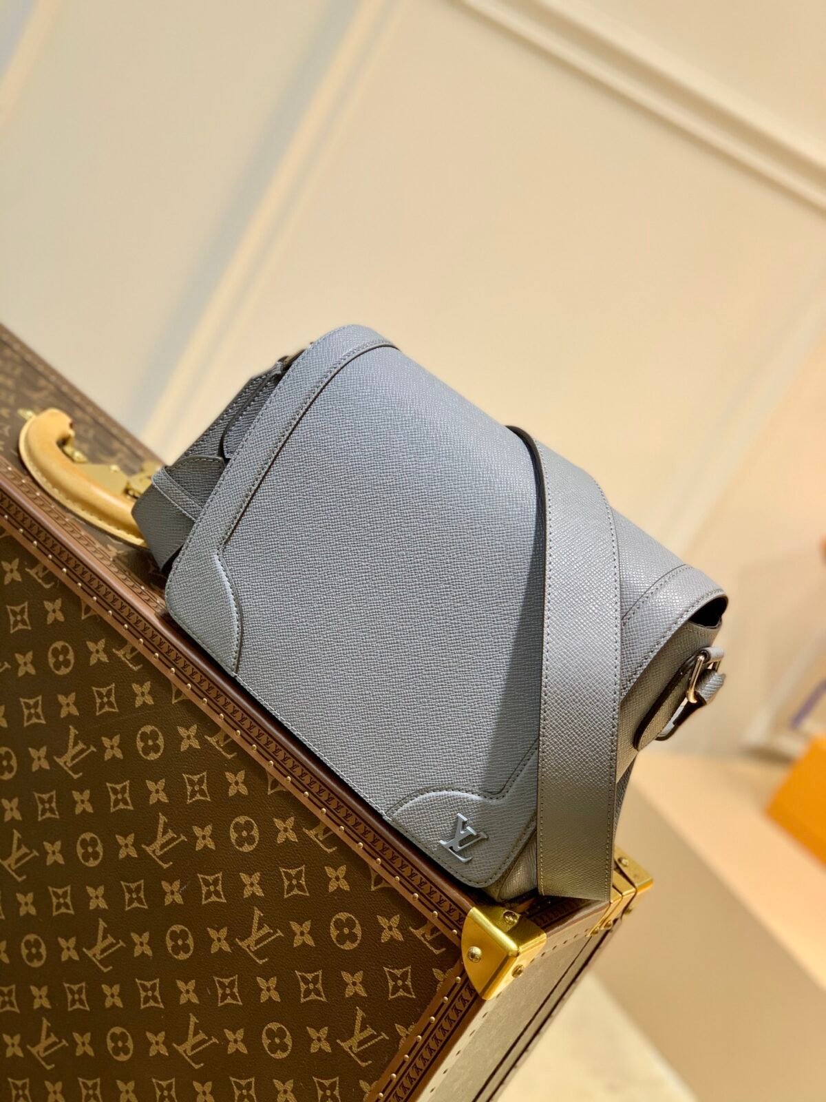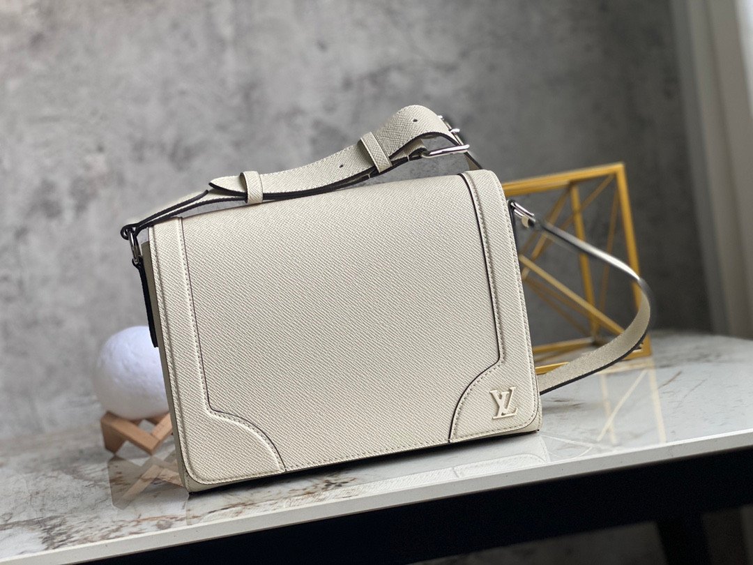 Crafted from the house’s signature Taïga embossed cowhide leather, the bag offers a rich, tactile finish that is both highly durable and exceptionally refined. It features subtle, reinforced leather corners that evoke Louis Vuitton’s historic trunk-making heritage, while a tonal metallic LV initials logo sits quietly on the lower corner for a modern, understated touch. The bag boasts a body-friendly, ergonomic design and is equipped with a wide, fully adjustable leather strap, ensuring a comfortable shoulder or crossbody carry from morning meetings to evening outings.