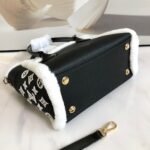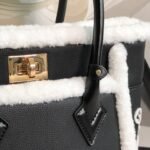 Embrace the chill of the season with the ultra-cozy and highly luxurious Louis Vuitton On My Side PM handbag. Masterfully crafted from rich, black grained calfskin leather, this special winter edition is beautifully framed with plush, contrasting white shearling (fleece) trim, instantly adding a touch of stylish warmth to your cold-weather wardrobe.