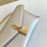Discover refined versatility with the elegant Padlock on Strap handbag. This stunning iteration is crafted from premium materials, featuring a beautifully textured Epi leather body contrasted by a sleek, smooth leather top flap. Available in a striking metallic silver or a classic black, it is the perfect statement piece for any modern wardrobe.