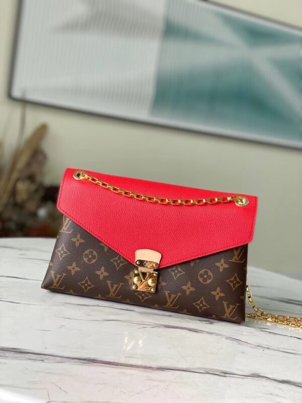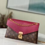 The Perfect Blend of Heritage and Contemporary Elegance Elevate your everyday wardrobe with the Louis Vuitton Pallas Chain bag. This exceptionally stylish handbag features a unique design that beautifully marries the Maison’s iconic Monogram coated canvas with a supple, brightly colored calfskin leather flap. Elegant pleat detailing and a structured envelope silhouette make this a highly versatile, day-to-night companion that exudes sophistication.