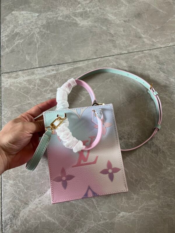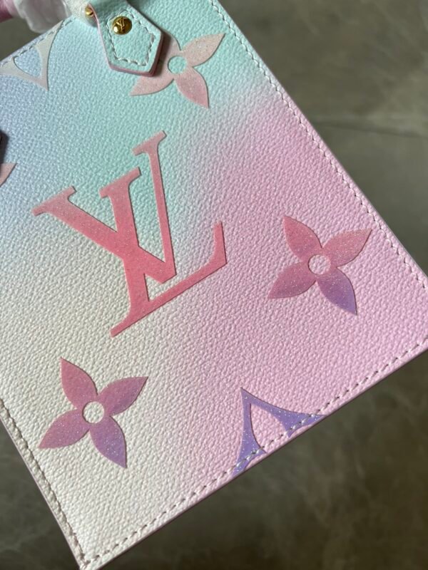 Capture the Radiance of a Spring Sunrise Welcome the season with the exquisite Louis Vuitton Petit Sac Plat from the exclusive “Spring in the City” capsule collection. This special edition mini tote breathes fresh life into the iconic Monogram canvas, featuring a breathtaking pastel gradient that mimics the brilliant, soft hues of a morning sunrise. Oversized Monogram motifs are printed across the gradient background, offering a playful yet highly sophisticated pop of color to any wardrobe.