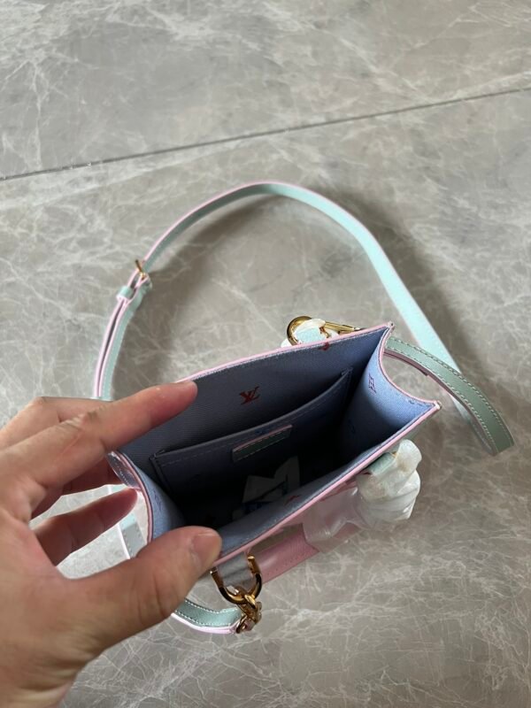 A Miniature Homage to a House Classic Taking its architectural cues from Louis Vuitton’s legendary Sac Plat, this miniature version offers the same sleek, structured vertical silhouette but in a feather-light, compact form. Despite its petite dimensions, the clever design provides a surprisingly roomy interior, perfectly sized to carry your smartphone, cards, keys, and a favorite lipstick.