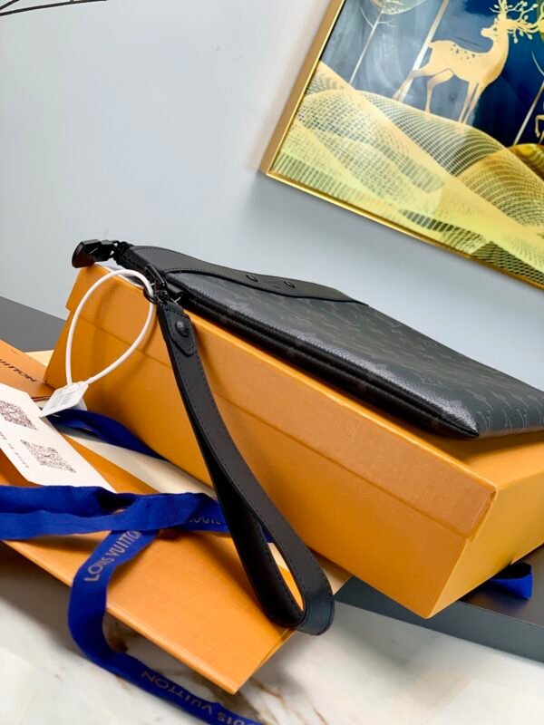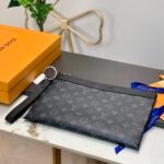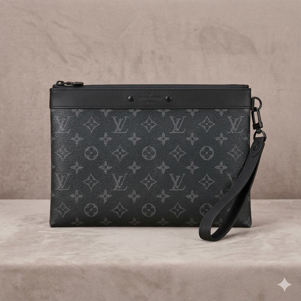 A Modern Essential for the Urban Individual Step away from the traditional briefcase and embrace the future of functional luxury. The Louis Vuitton Pochette To-Go is a contemporary masterpiece designed for those who value a streamlined, minimalist aesthetic without sacrificing utility. Crafted from the Maison’s signature Monogram Eclipse coated canvas, this oversized clutch delivers a sharp, masculine edge that transitions effortlessly from the boardroom to evening social gatherings.