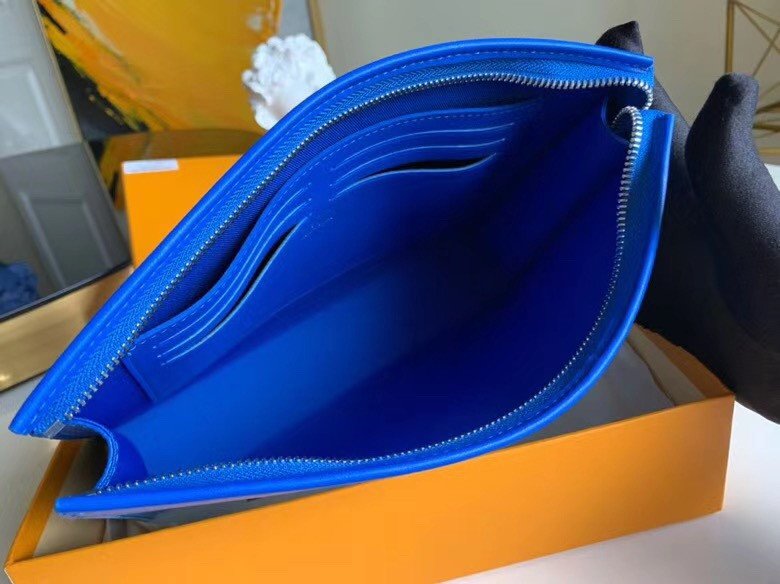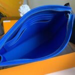 The visually striking exterior is flawlessly framed by vibrant blue leather trim and secured by a sleek top zipper. Designed for the modern man on the go, this pouch doesn’t just deliver on high-fashion aesthetics; it also offers exceptional everyday functionality. The smartly designed interior is equipped with dedicated pockets and integrated card slots, ensuring your daily essentials are always kept neatly organized and easily accessible.