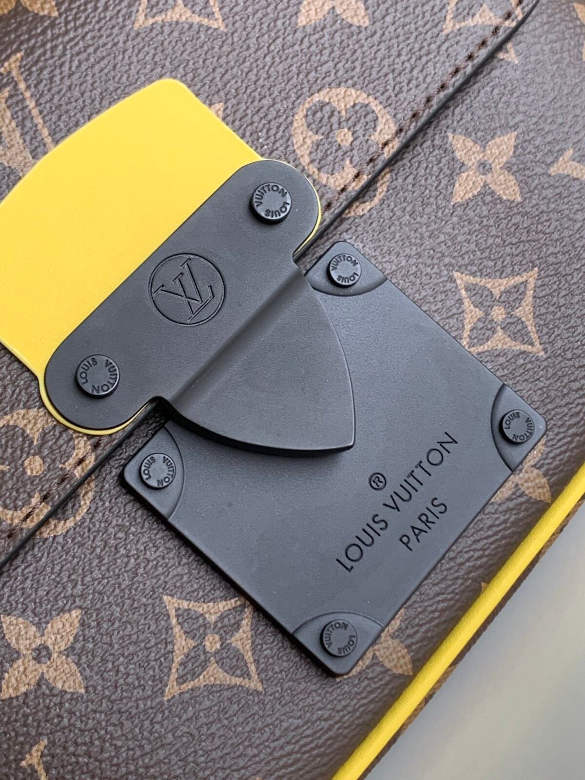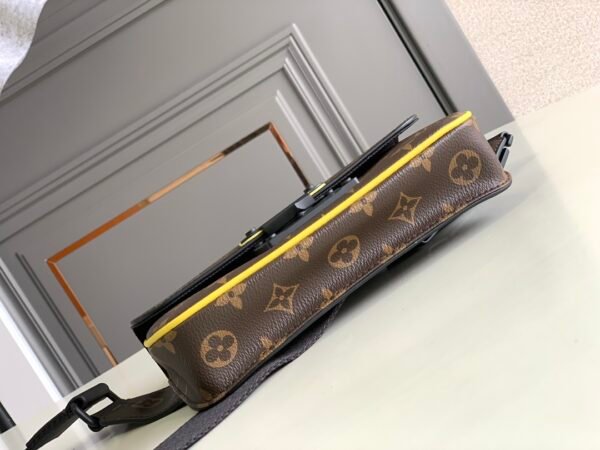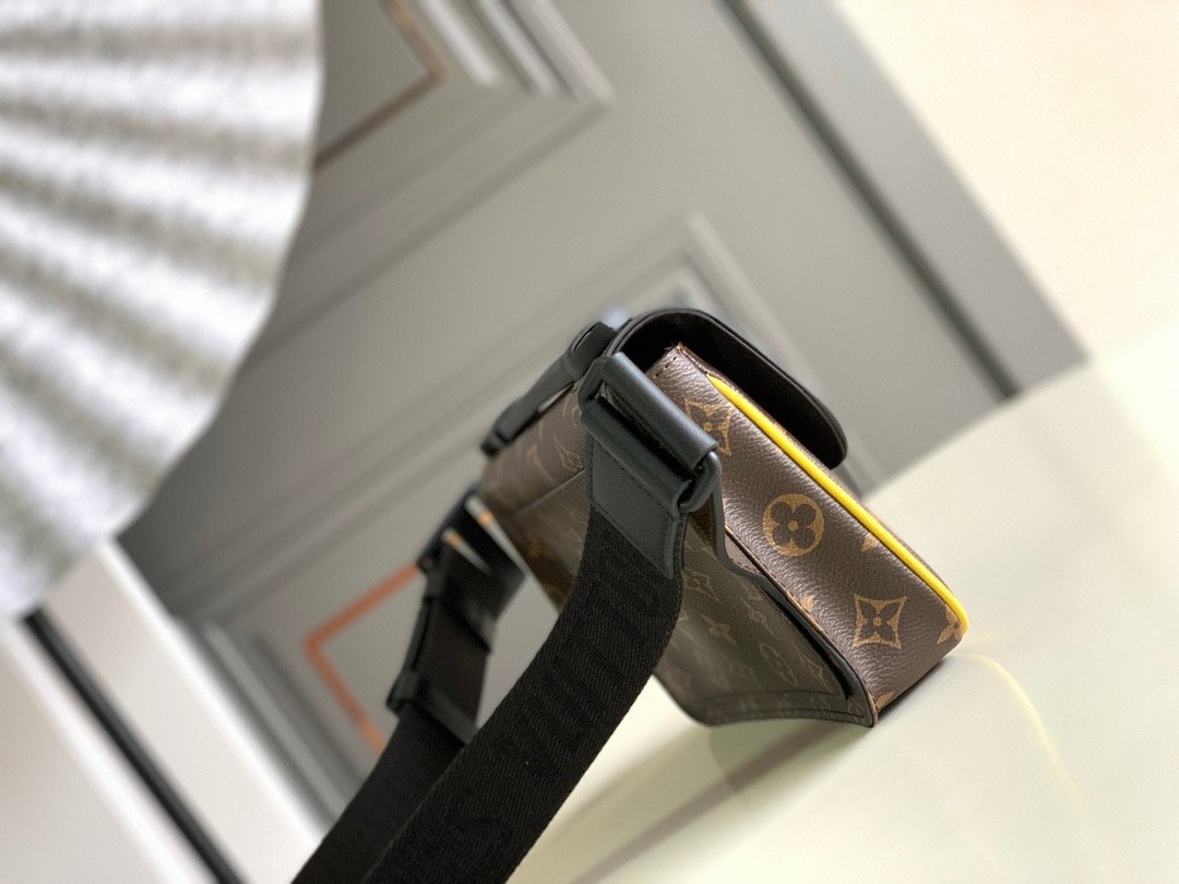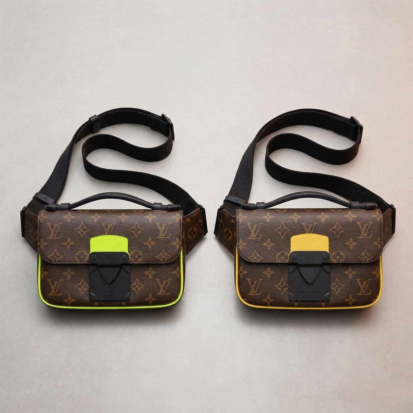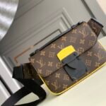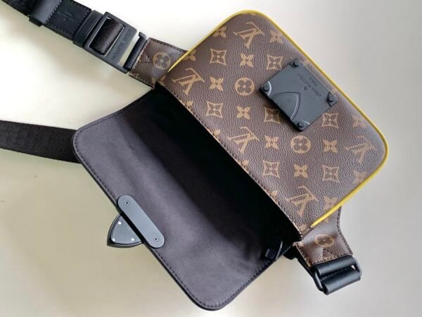 Elevate your streetwear aesthetic with the innovative S Lock Sling bag. Crafted from the House’s signature Monogram Macassar coated canvas, this statement piece is instantly set apart by its striking fluorescent yellow leather edge detailing. The focal point of the design is its ingenious magnetic closure; crafted from sleek matte black metal, it draws direct inspiration from Louis Vuitton’s historic traditional hard trunk locks, ensuring your belongings are kept stylishly secure.
