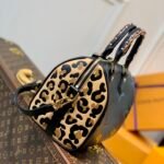 Key Features: Oversized embossed Monogram pattern, leopard print side gussets, signature braided Toron top handles, LV padlock and keys, and a detachable/adjustable leather shoulder strap.