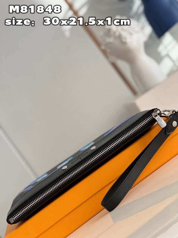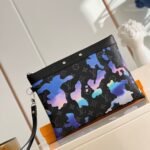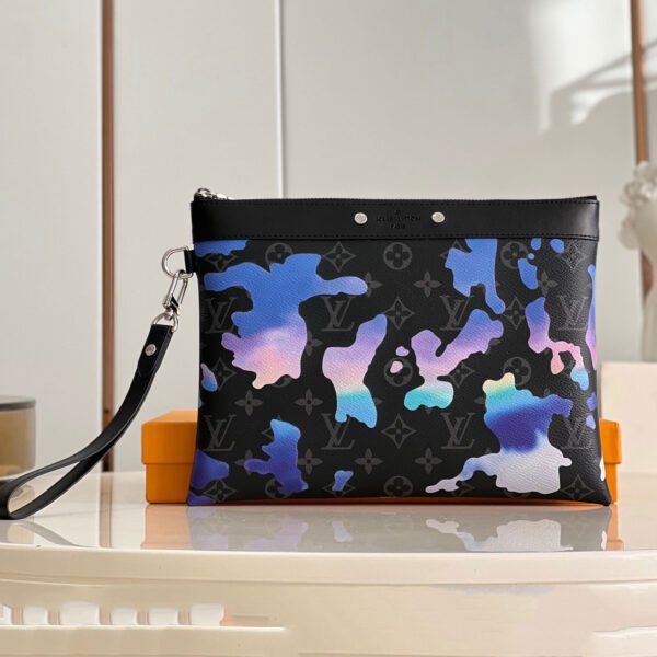 Artisanal Heritage & Refined Accents The pouch is beautifully finished with a smooth black cowhide leather top trim, featuring a beveled “Louis Vuitton Paris” signature plate and polished silver-tone studs. Every detail, from the gradient color transition of the clouds to the precision stitching, reflects the Maison’s uncompromising dedication to high-art craftsmanship. This is not just an accessory; it is a wearable piece of contemporary landscape art.