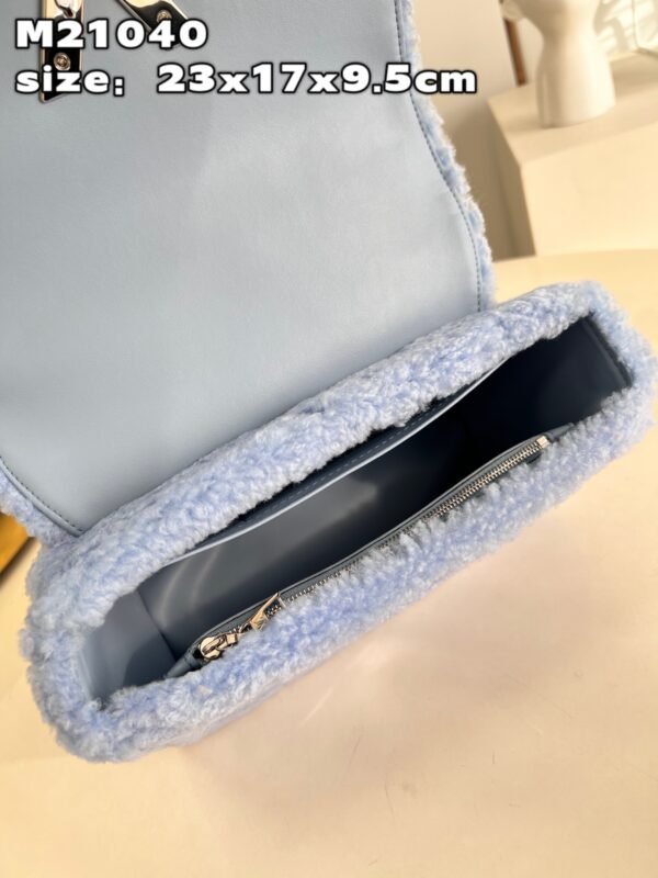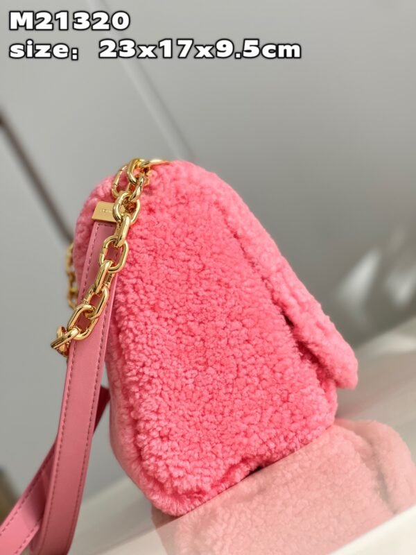 Iconic Design with an Artistic Twist At the heart of the bag is the signature LV Twist lock, a modern engineering marvel where the “L” transforms into a “V” with a single smooth turn. For this special edition, the sliding chain is beautifully adorned with enamel Monogram Flower charms, adding a delicate, jewelry-like detail to the bold shearling backdrop. Every element, from the vibrant colors to the gleaming metallic hardware, reflects the uncompromising artisanal excellence of Louis Vuitton.