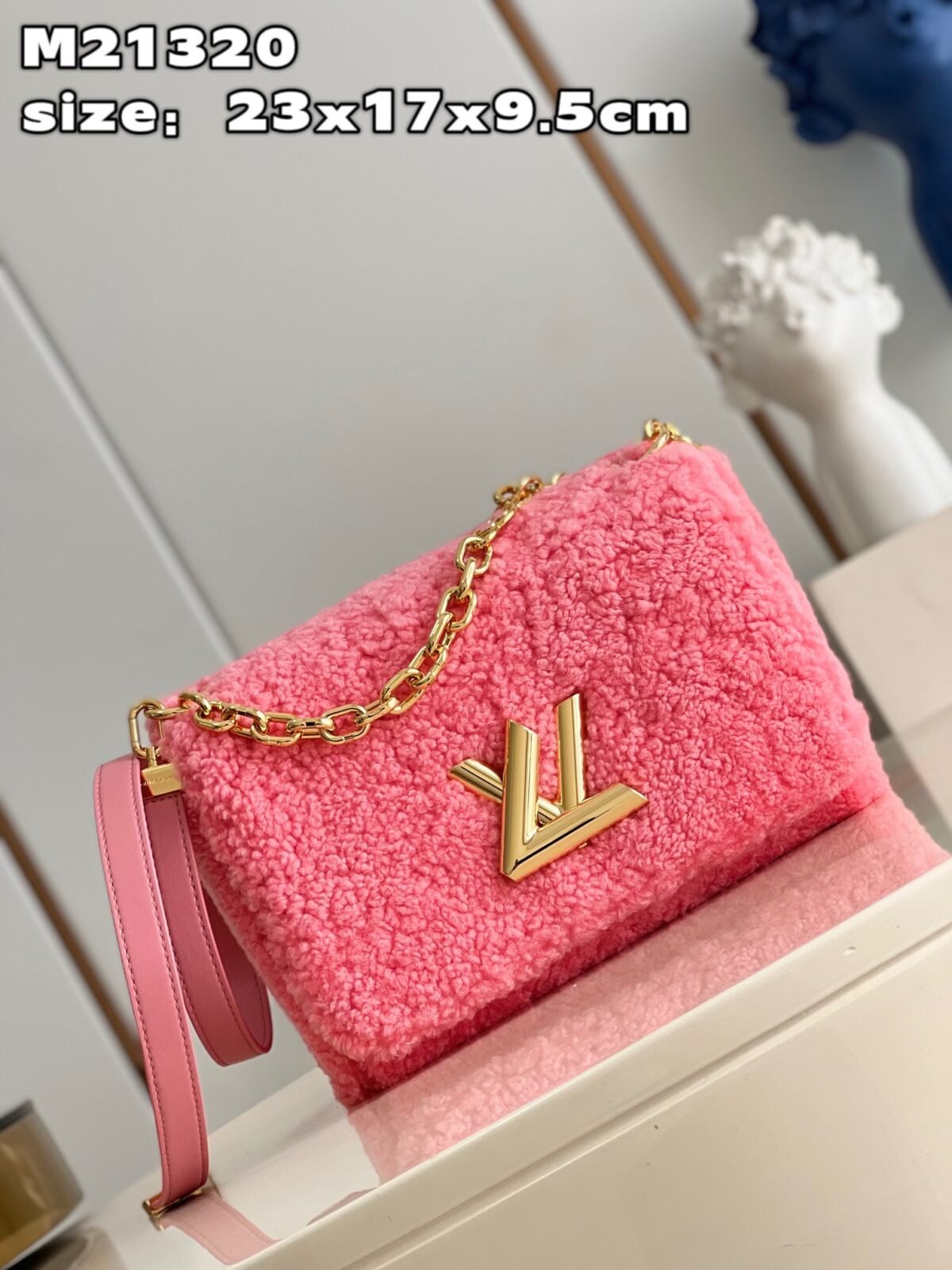 A Tactile Masterpiece of Seasonal Luxury Elevate your winter wardrobe with the Louis Vuitton Twist MM, reimagined in sumptuously soft shearling wool. This edition brings a playful yet ultra-luxurious texture to the Maison’s iconic architectural silhouette. The plush, tactile exterior makes a bold visual statement, transforming the classic Twist into a cozy, high-fashion companion that is as warm to the touch as it is striking to the eye.