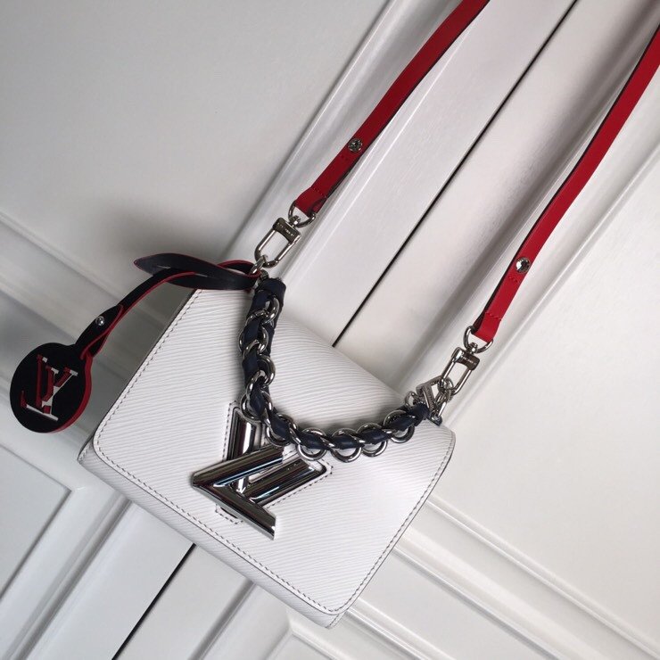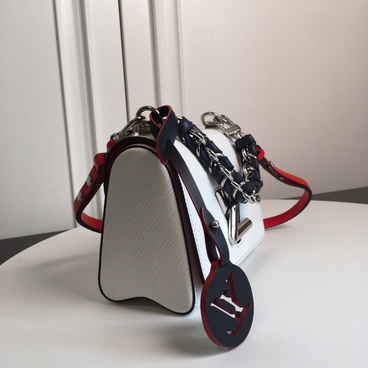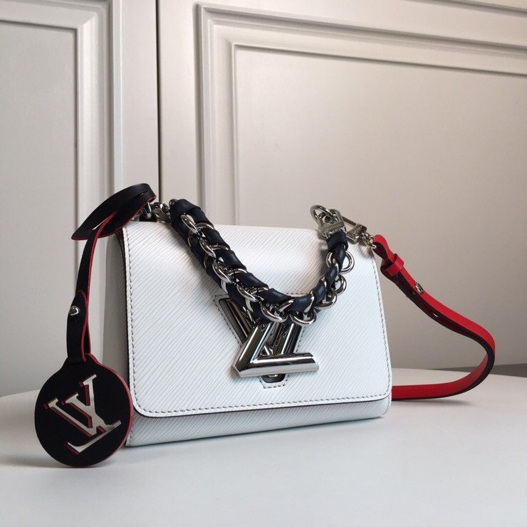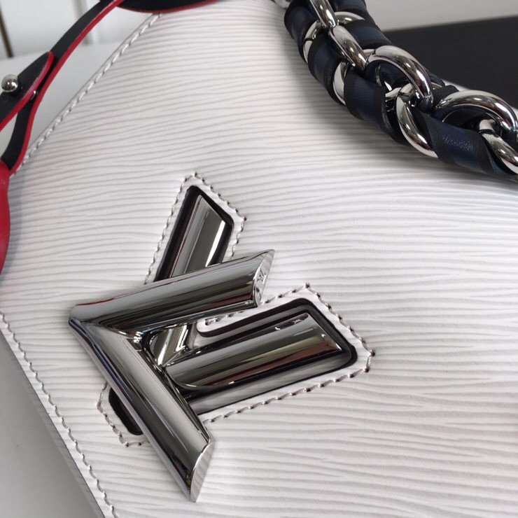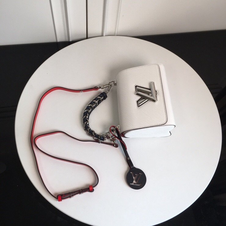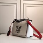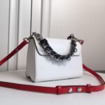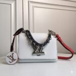 Playful Hardware & Sophisticated Detailing The centerpiece of this bag is the innovative silver-finish Twist lock, a modern engineering marvel where the “L” transforms into a “V” with a single smooth turn. This special edition features a unique short chain handle braided with dark leather, providing a rich textural contrast against the pristine white leather. To add a touch of whimsy, the bag is adorned with a colorful, detachable circular LV charm, showcasing the House’s playful approach to artisanal craftsmanship.