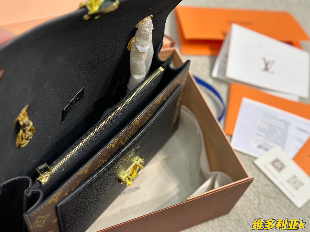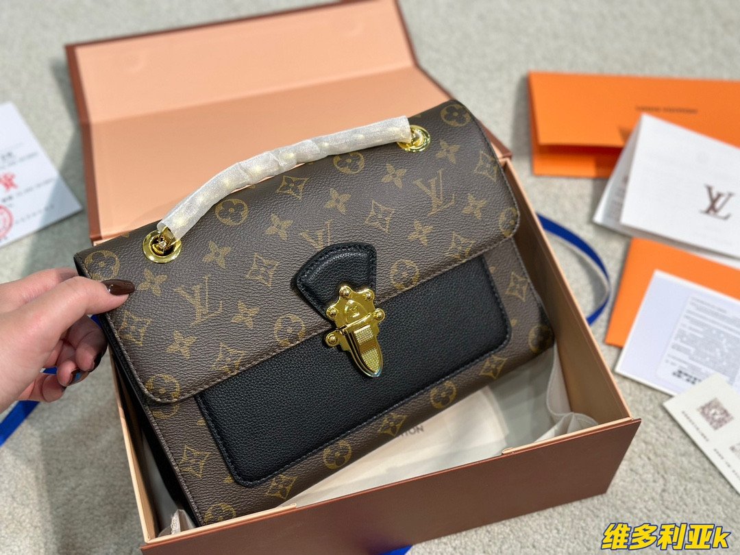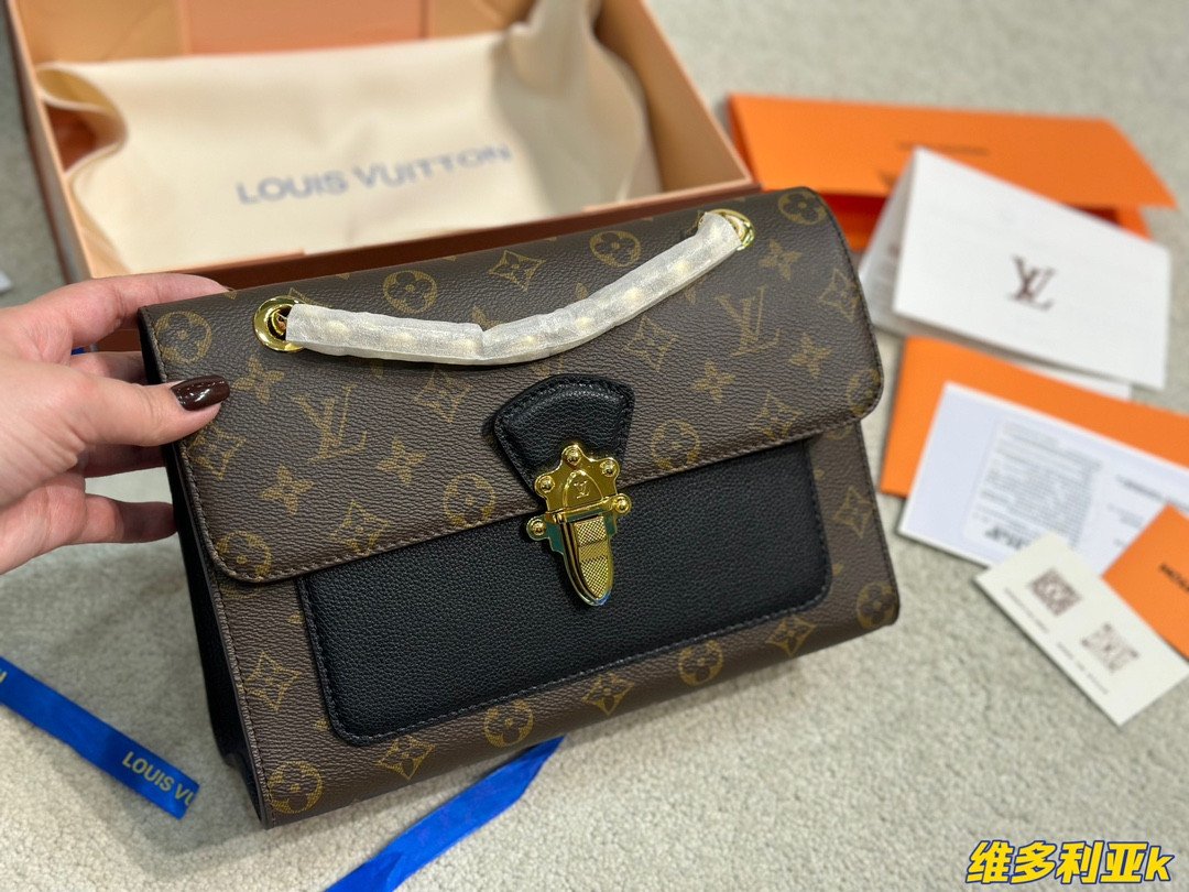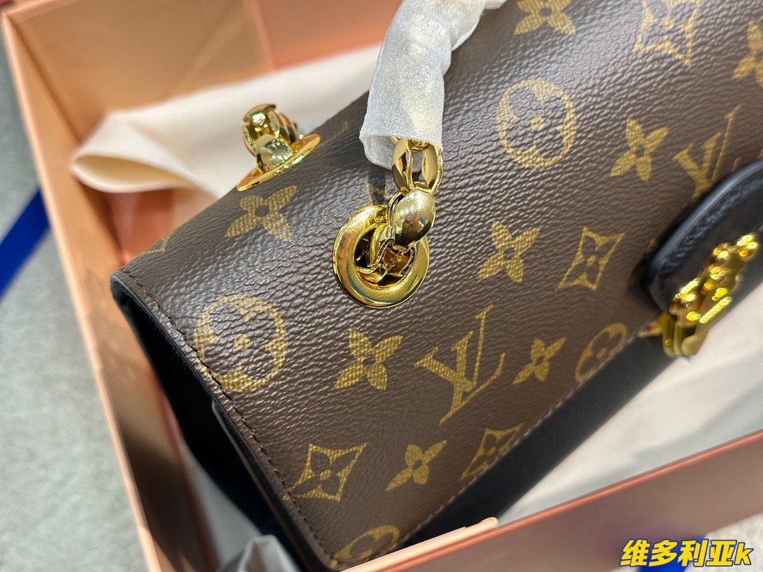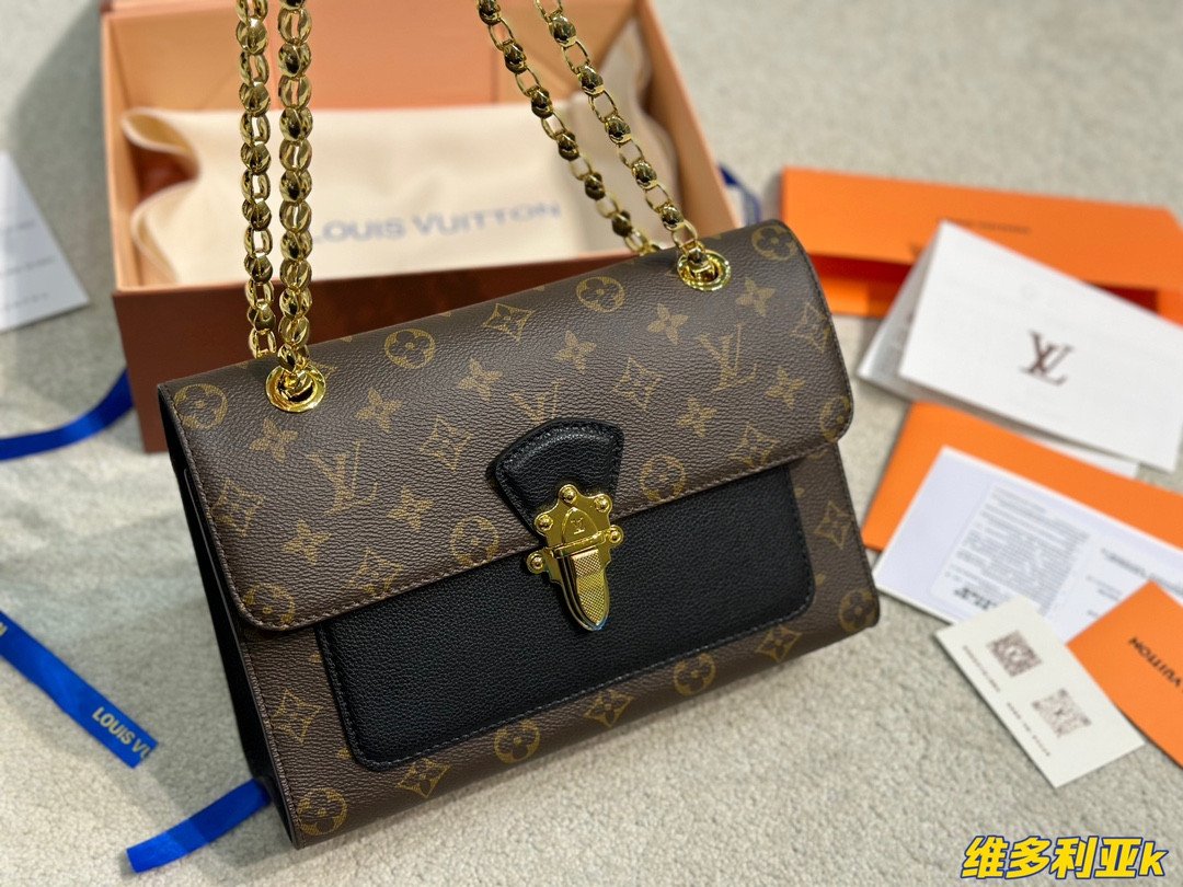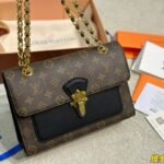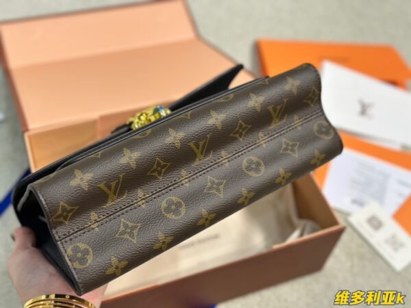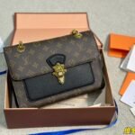 A Perfect Harmony of Heritage and Modernity Elevate your style with the Louis Vuitton Victoire, a sophisticated day-to-night bag that seamlessly blends the Maison’s classic DNA with a modern urban edge. Crafted from the world-renowned Monogram coated canvas, the Victoire is beautifully offset by a front pocket and side panels in supple black grained calf leather. This contrast not only adds a touch of contemporary chic but also emphasizes the architectural beauty of the bag’s silhouette.