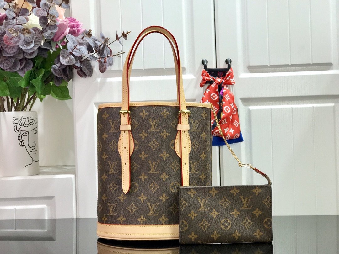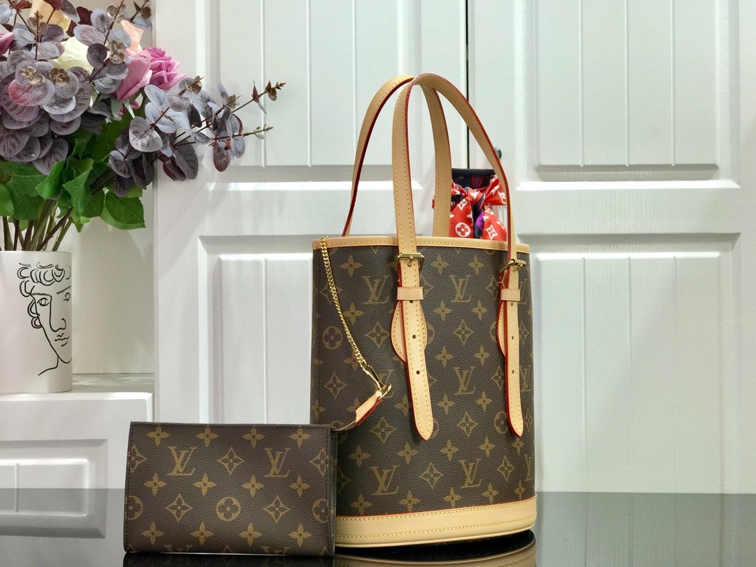 Elevate your daily style with this timeless Louis Vuitton “Mother-and-Child” Bucket Bag. A staple of the house’s vintage collection, this bag is crafted from iconic, soft Monogram coated canvas paired with natural cowhide leather trim.