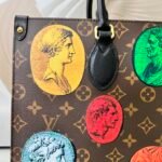 Crafted from the exclusive Monogram Cameo coated canvas, the bag serves as a stunning visual gallery. It features vibrant, multicolored cameo and ancient coin motifs beautifully superimposed over the classic Monogram print. These intricate, relief-style elements draw direct inspiration from ancient antiquity found in the Fornasetti archives, creating a bold, illusionary aesthetic that is both historical and unapologetically modern.
