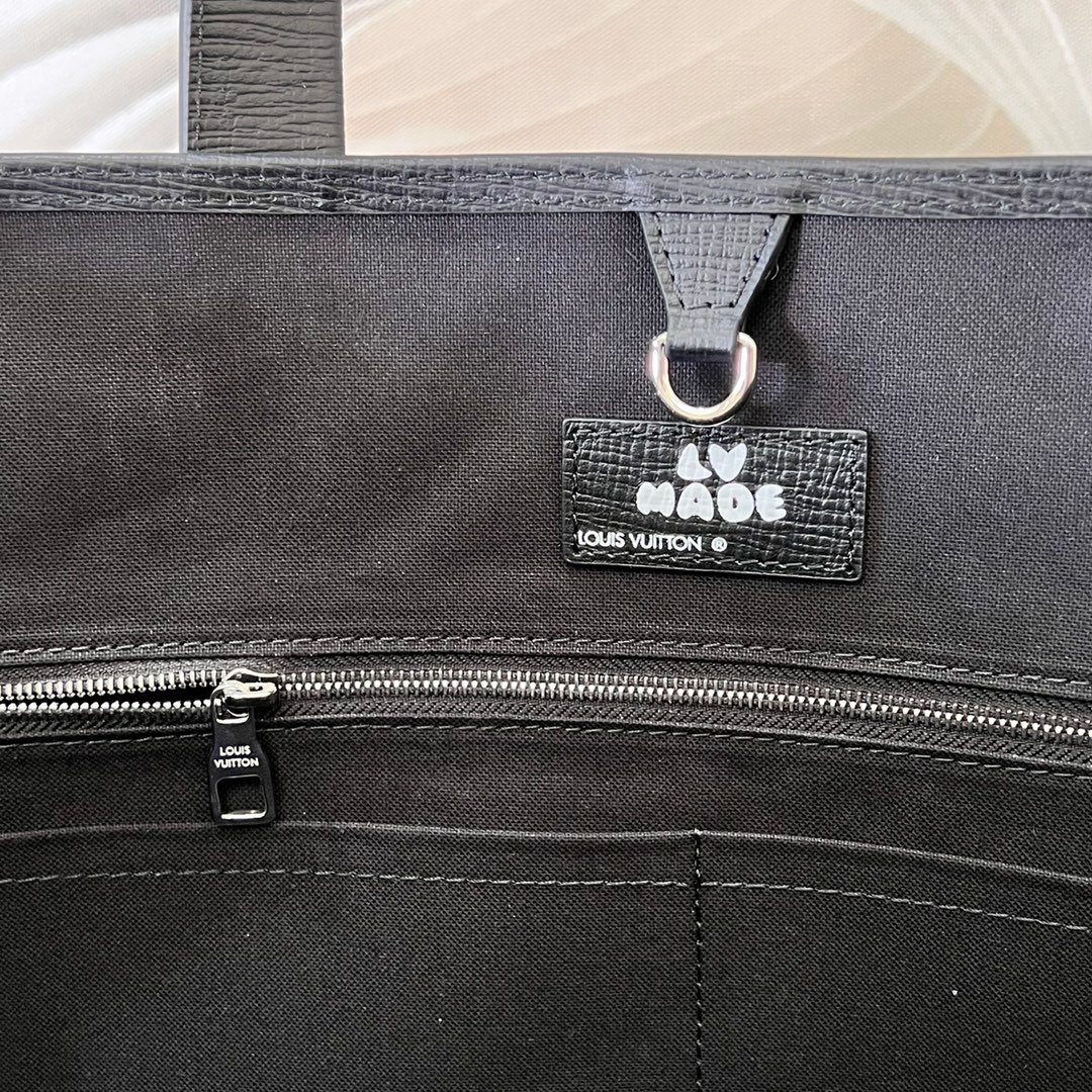 Key Features: Massive interior capacity, exclusive Nigo “LV Made” artwork, heritage trunk-inspired leather straps and rivets, rolled leather top handles, wide adjustable canvas shoulder strap.