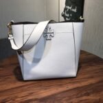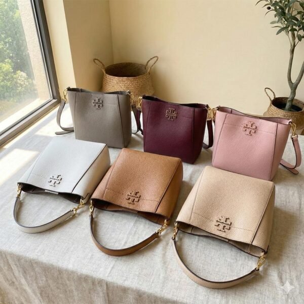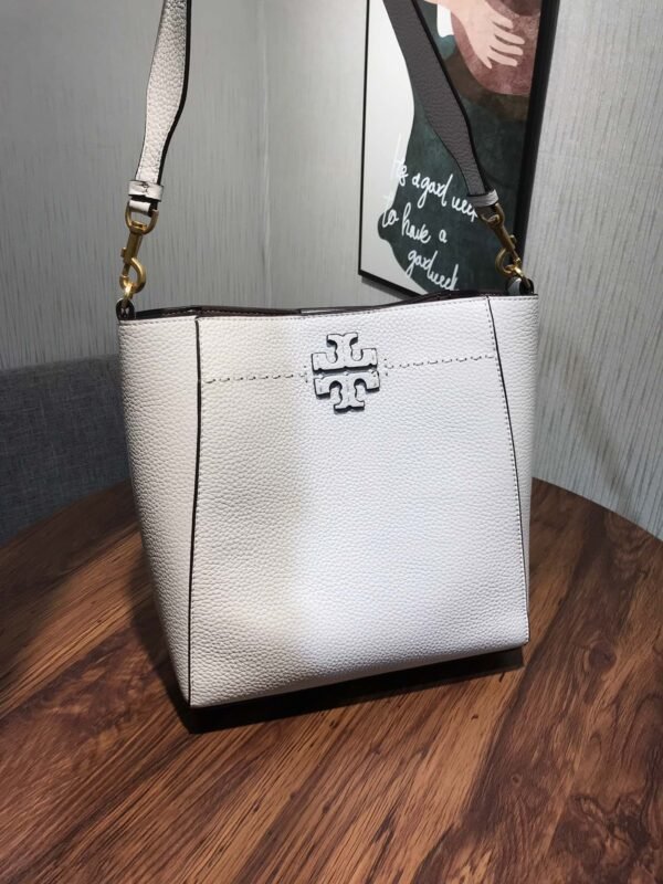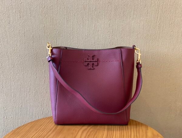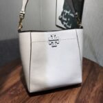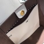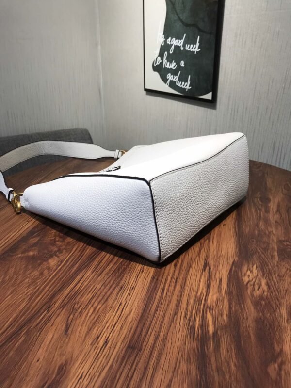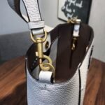 A key feature of this bag is its shape-shifting ability: it is designed with an internal closure that allows you to “button it up” to tuck in the sides, instantly transforming the silhouette into a more compact, structured bucket shape. The front is adorned with the collection’s signature die-cut Double T logo, framed by hand-sewn pick stitching, reflecting refined artisanal craftsmanship.