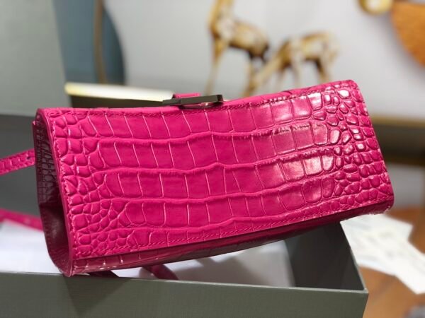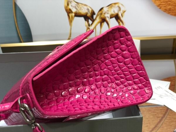 The Definition of High-End Attitude This Balenciaga Hourglass Bag represents the pinnacle of the “Original Factory” version. It is crafted from Italian cowhide with a glossy crocodile embossment that is visually stunning and soft to the touch. What truly sets this edition apart is the sensory detail: the leather carries a light, sophisticated fragrance, perfectly mimicking the experience of buying directly from the boutique, free from the harsh chemical smells of lesser replicas.