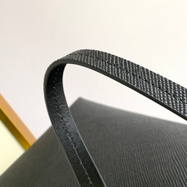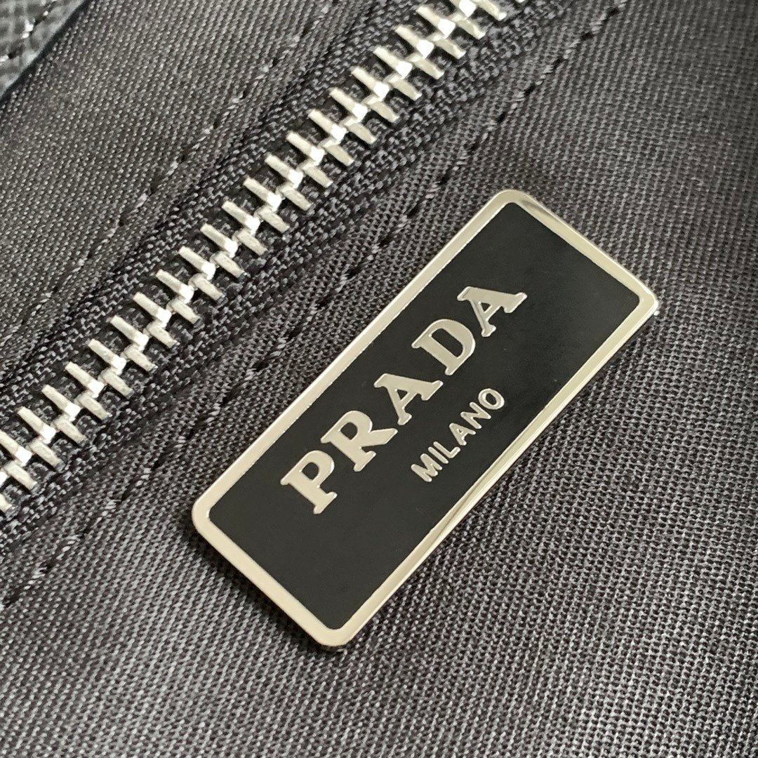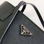 The bag is expertly crafted from Prada’s legendary Saffiano leather, a signature material celebrated for its distinctive crosshatch shadow pattern and durable waxed finish. This unique texture not only provides a luxurious feel but also offers exceptional resistance to daily wear and tear. Taking center stage is the House’s historic enameled metal triangle logo—originally designed by Mario Prada for his classic travel trunks—adding a brilliant touch of timeless heritage to the bag’s minimalist facade.