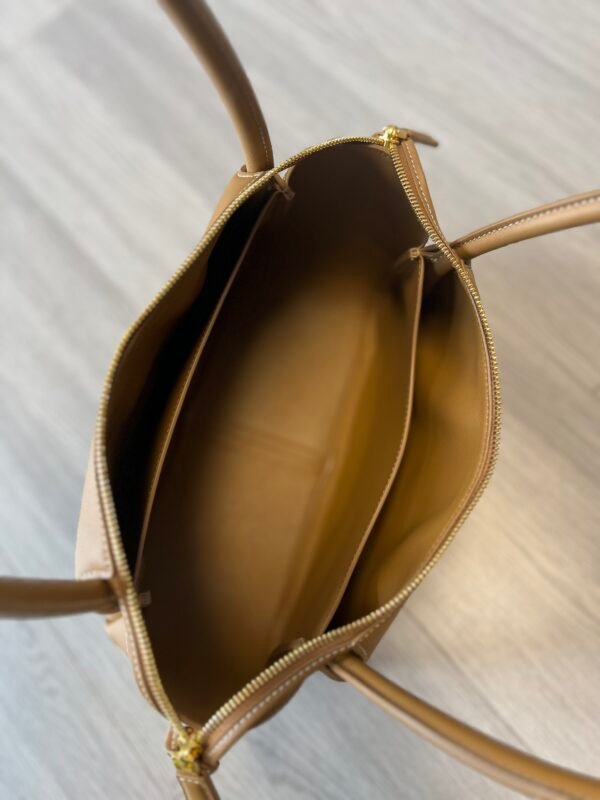 The exterior of the bag is meticulously crafted from premium, brand-specific Italian calfskin. This leather is celebrated for its exquisite grain and resilient nature, offering a “soft yet structured” feel that maintains its elegant shape without collapsing over time. One of the hallmarks of its superior quality is the sensory experience; the leather carries a faint, natural fragrance rather than a pungent chemical odor, signifying a high-end tanning process.