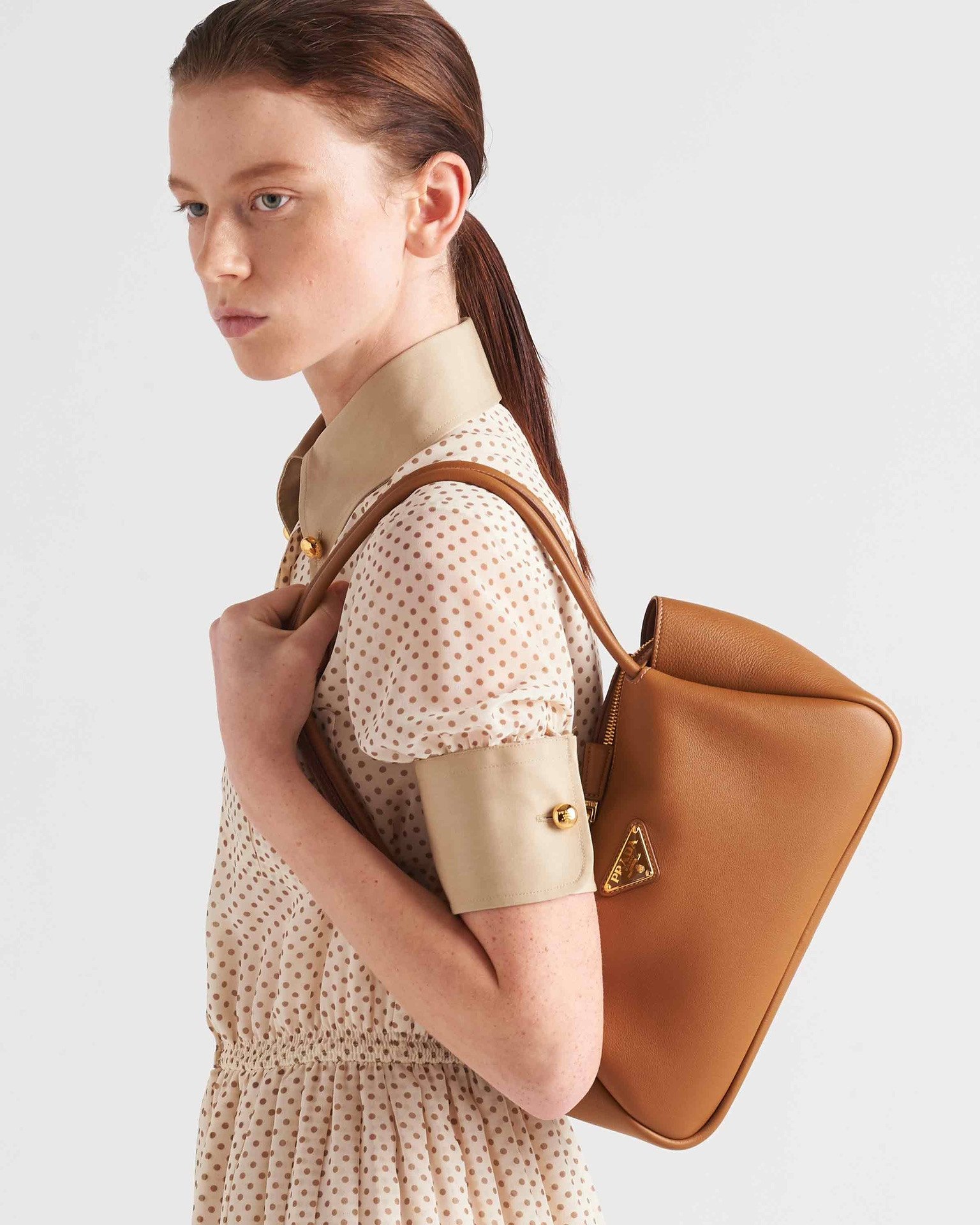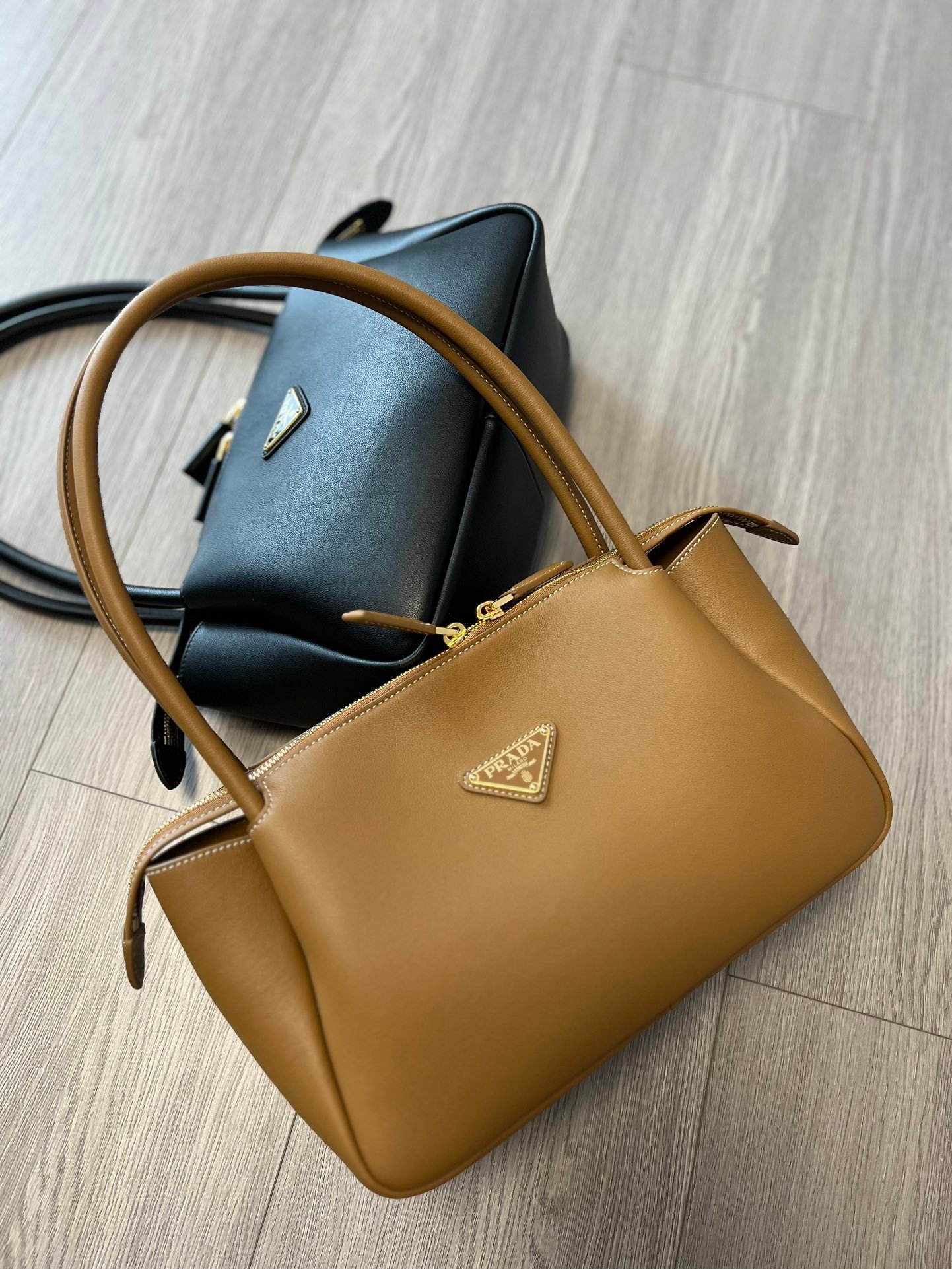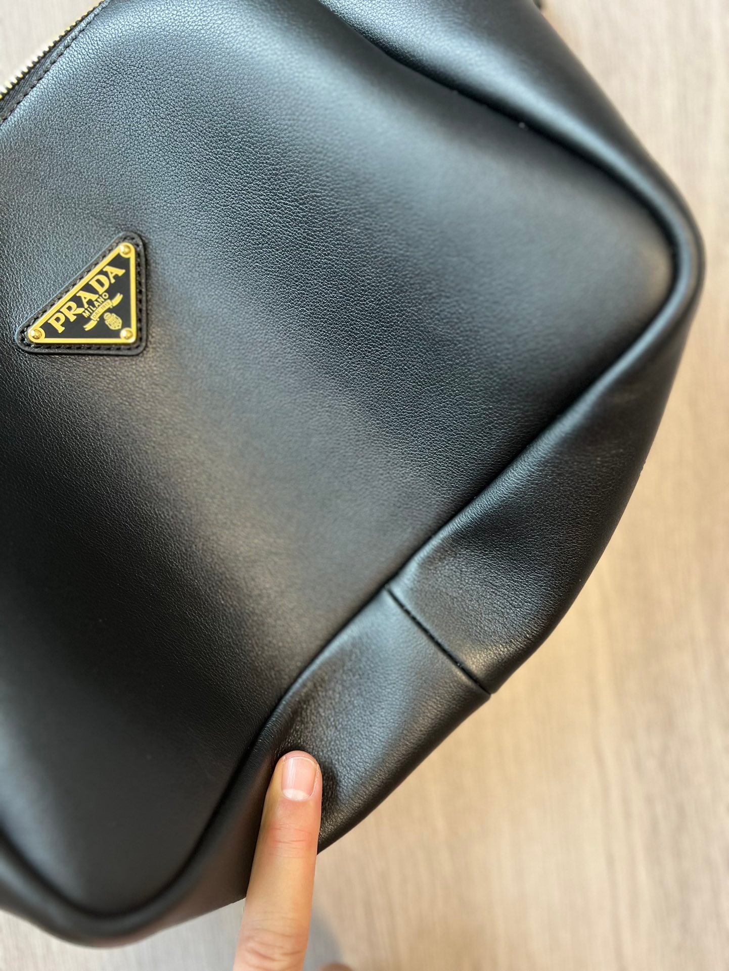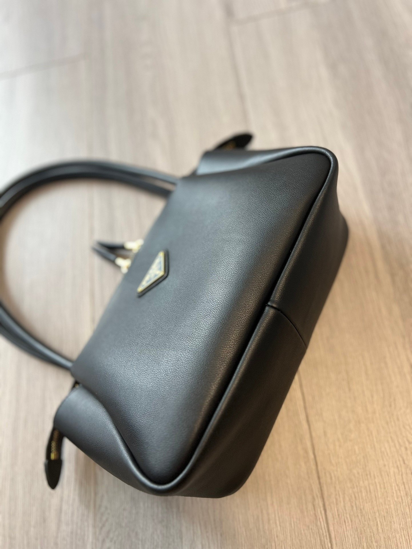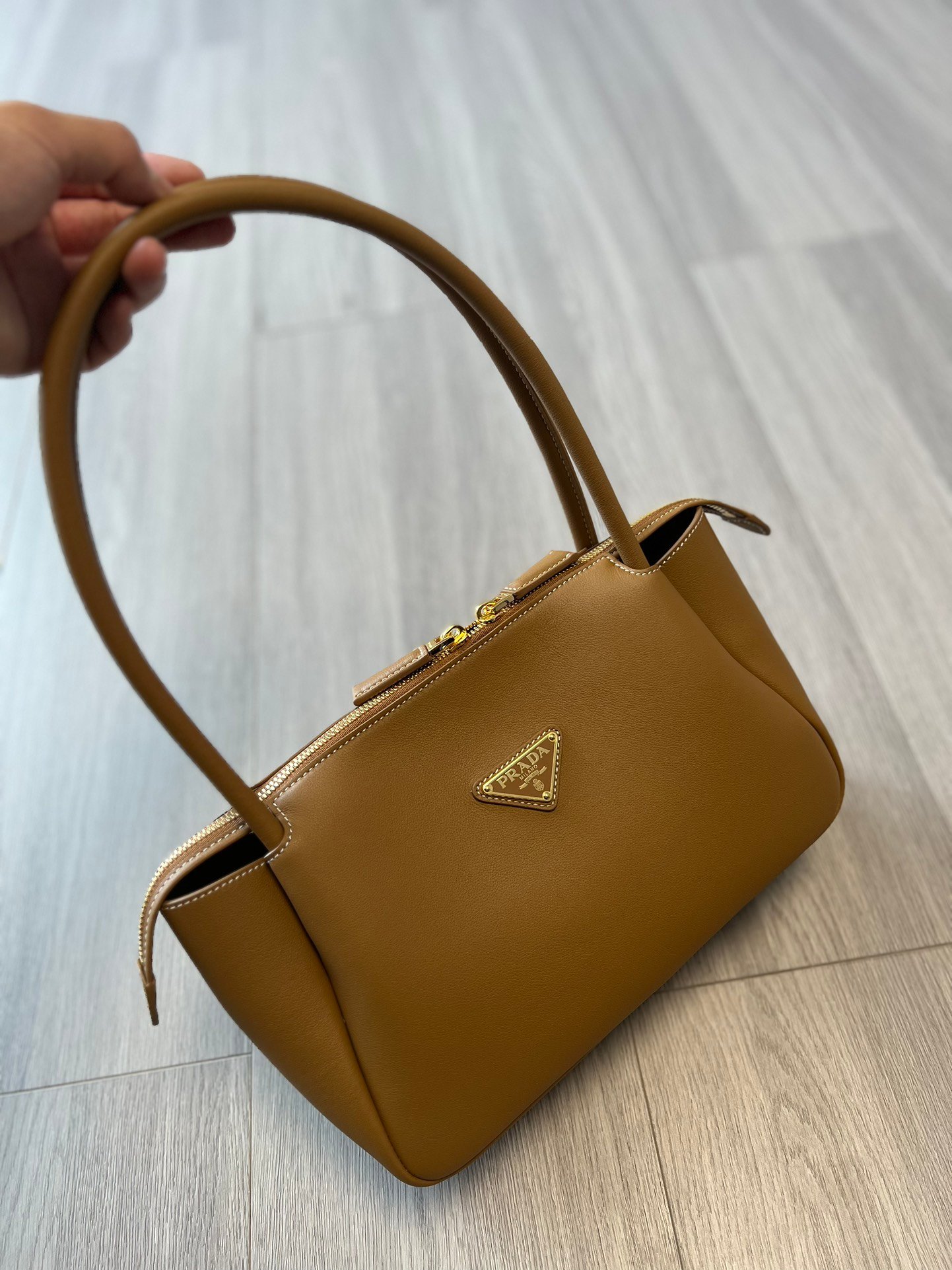 True to Prada’s heritage, the bag features the iconic enameled metal triangle logo on the front. The hardware is finished with real gold plating, giving it a deep, lustrous “golden drop” glow that resists tarnishing and exudes a high-texture brilliance. The dual-zipper closure is designed for smooth operation, ensuring both security and ease of access to your belongings.