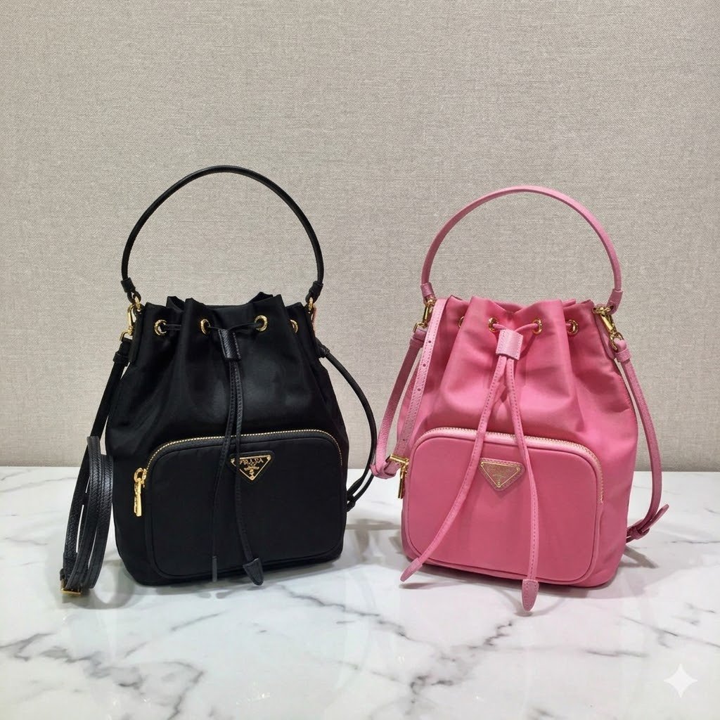 The Ultimate Blend of Heritage and Modernity Redefine your accessory collection with the Prada Re-Nylon and Saffiano Leather Bucket Bag. A masterpiece of contemporary design, this bag draws inspiration from Prada’s iconic 1980s aesthetic, blending industrial-grade functionality with high-fashion sophistication. Whether you are navigating the city streets or attending a chic weekend brunch, this bucket bag offers the perfect balance of lightweight comfort and luxurious detail.
