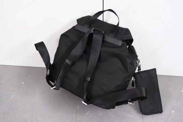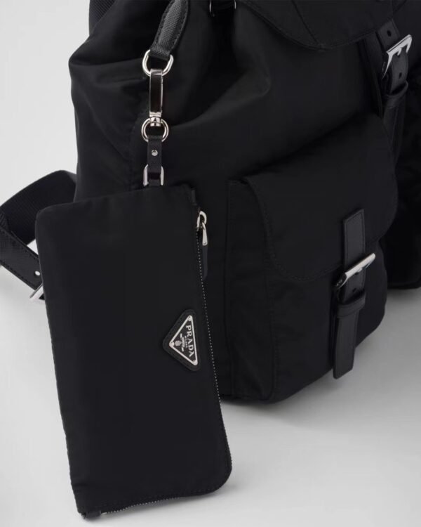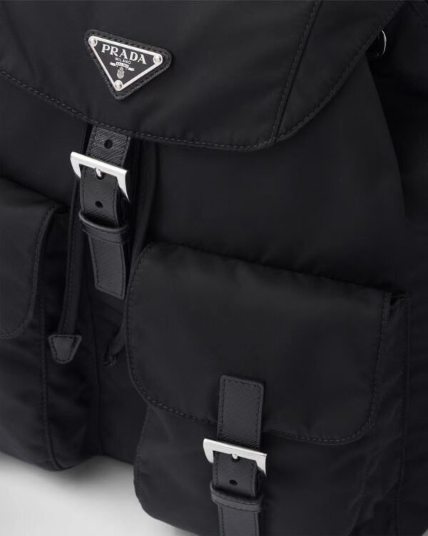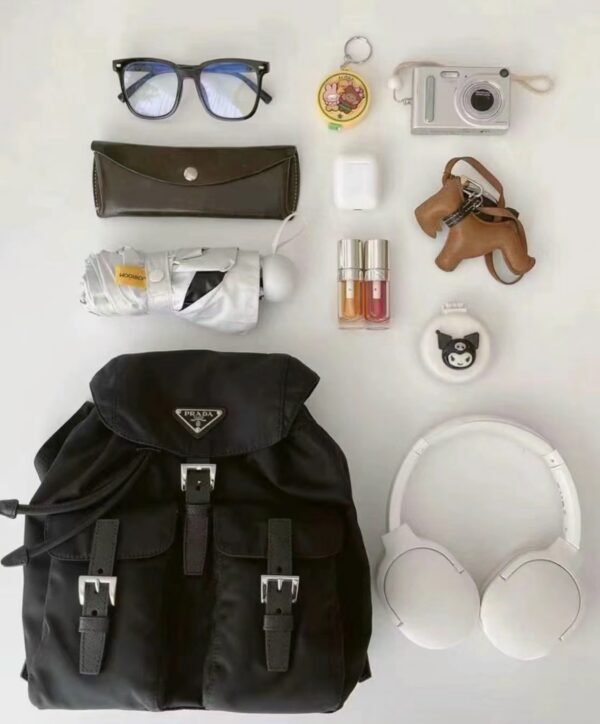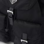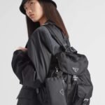 The backpack is crafted from Prada’s signature Re-Nylon—a regenerated yarn produced from recycled plastic waste collected from oceans and textile fiber waste. This “umbrella cloth” material is celebrated for its incredible durability, water resistance, and feather-light weight, making it the perfect companion for long summer trips or daily urban commutes.