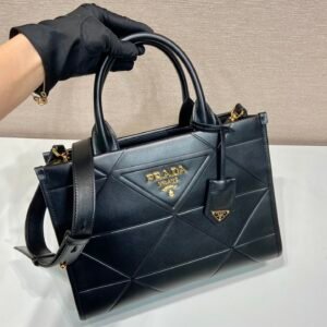 What sets this model apart is the handmade triangular quilting. Unlike mass-produced patterns, each geometric line is expertly stitched by hand to create a padded, relief effect that plays with light and shadow. This quilting technique not only reinforces the bag’s structure but also pays homage to Prada’s geometric DNA. The leather undergoes a specialized treatment to ensure it retains its sheen and resists minor scuffs, making it as practical as it is beautiful.