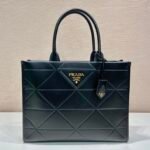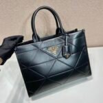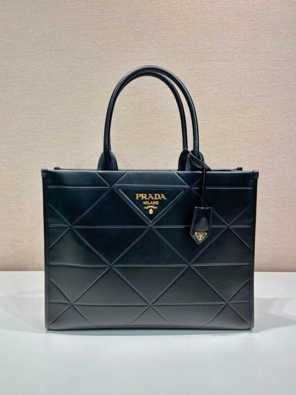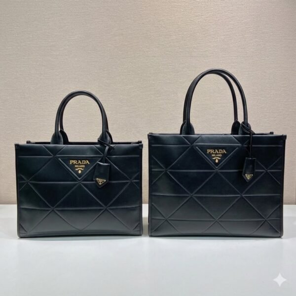 Redefine your daily elegance with the Prada Symbole Geometric Tote, a masterpiece that marries structural precision with the house’s storied heritage. This sophisticated silhouette is defined by its avant-garde interpretation of the iconic Prada triangle, reimagined as a luxurious, hand-stitched quilting pattern that wraps the entire body of the bag. Crafted for the modern woman who demands both style and substance, this tote is available in two versatile sizes—Medium (1BA378) and Large (1BA377)—to seamlessly transition from professional boardroom settings to refined weekend getaways.