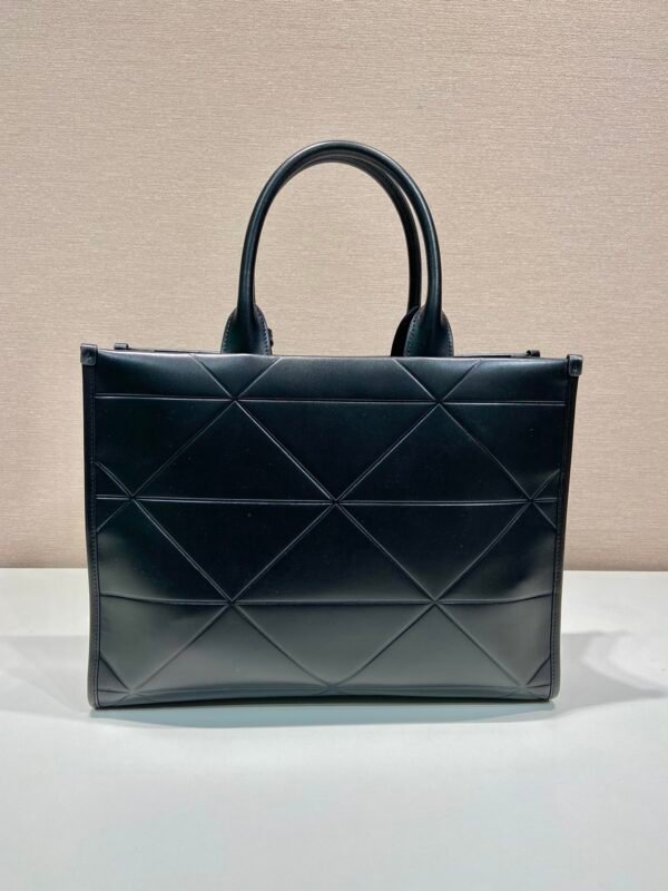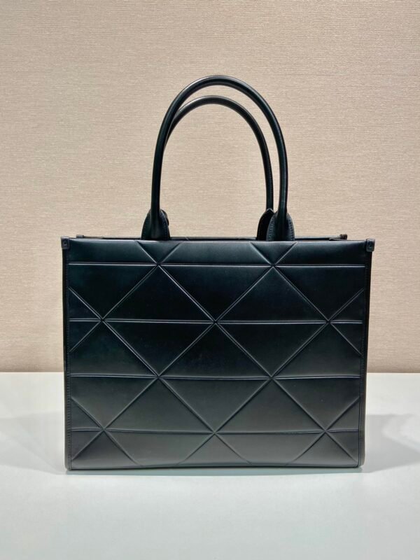2. The Large Tote (Model 1BA377): For those who carry their world with them. The large version offers significant volume without sacrificing the bag’s elegant lines. It is spacious enough for a full-sized laptop, documents, and even a change of shoes or light travel essentials. It serves as a sophisticated “Neverfull” alternative for the luxury connoisseur.