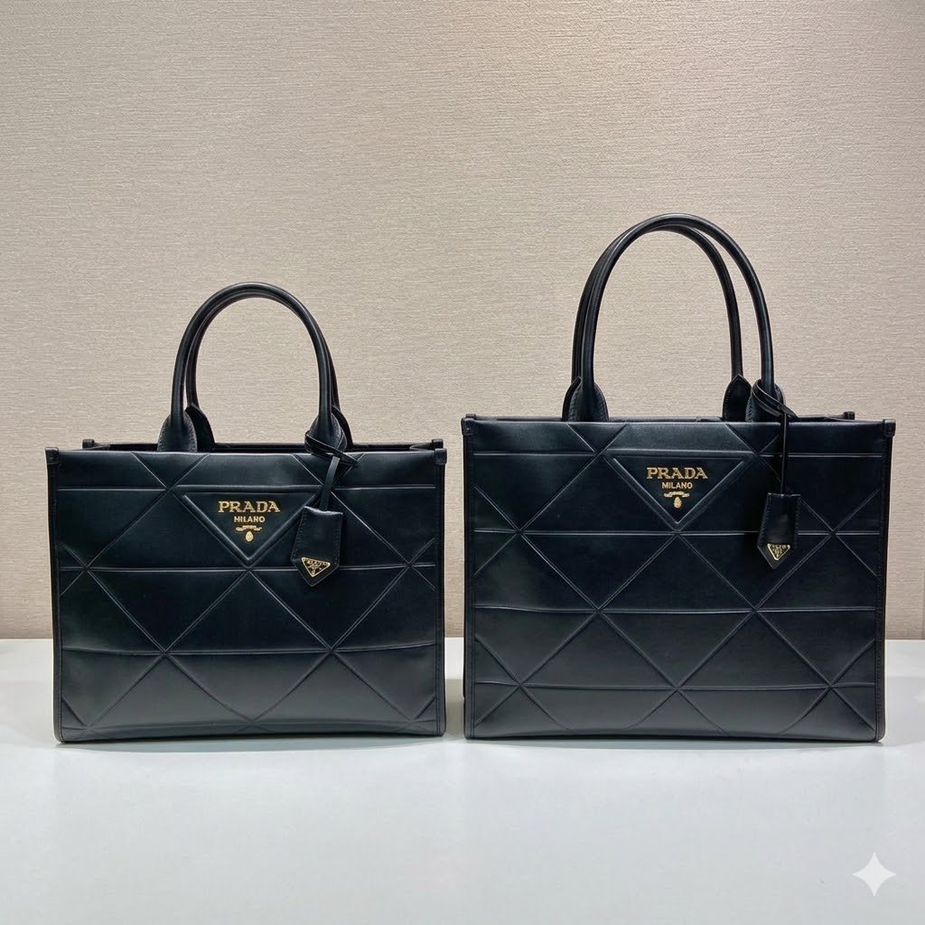 1. The Medium Tote (Model 1BA378): The perfect daily companion. This size is specifically designed to accommodate your essential electronics, including tablets and small laptops, alongside your beauty kit and daily planner. It offers a sleek, compact profile that never feels bulky, making it the ideal choice for urban commutes and business lunches.