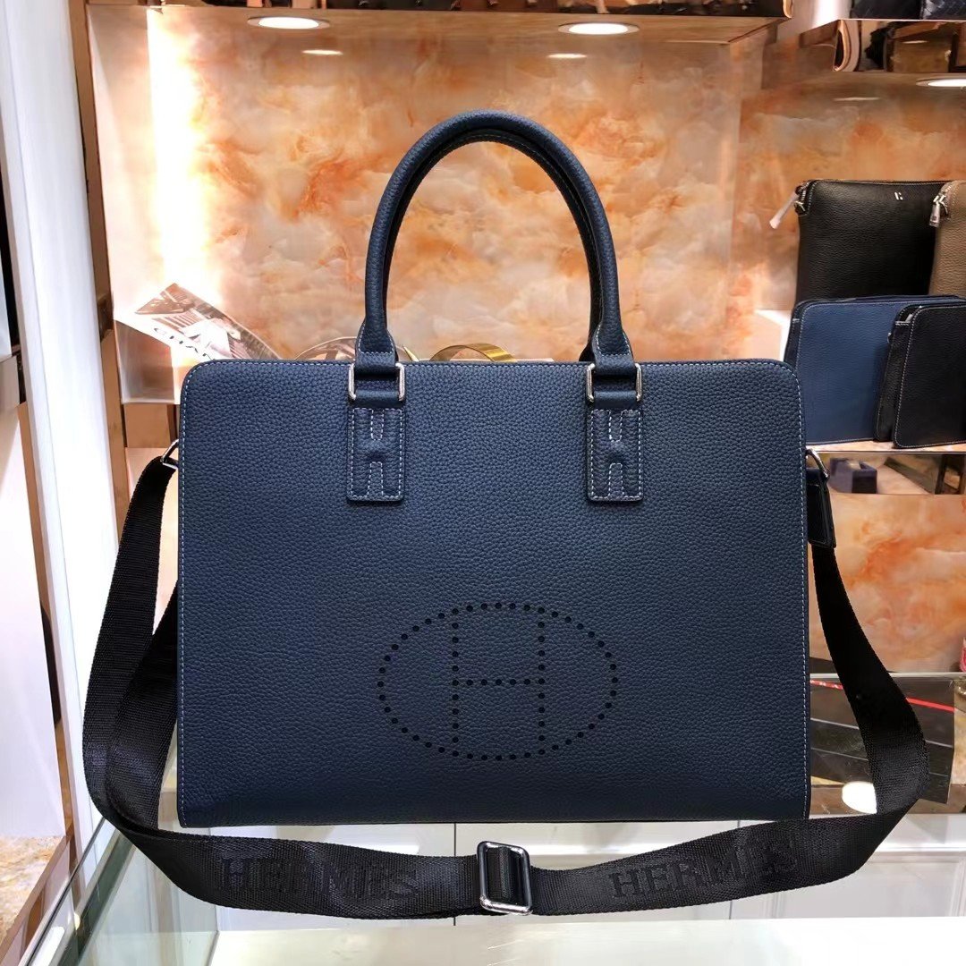 Modern Professional Elegance Make a lasting impression with the Hermès Model 9007-1 Briefcase, a perfect blend of high-fashion aesthetics and practical business utility. Featuring a perforated “H” logo on the front and white contrast stitching, this bag is designed for the modern executive who values a sophisticated yet casual look.