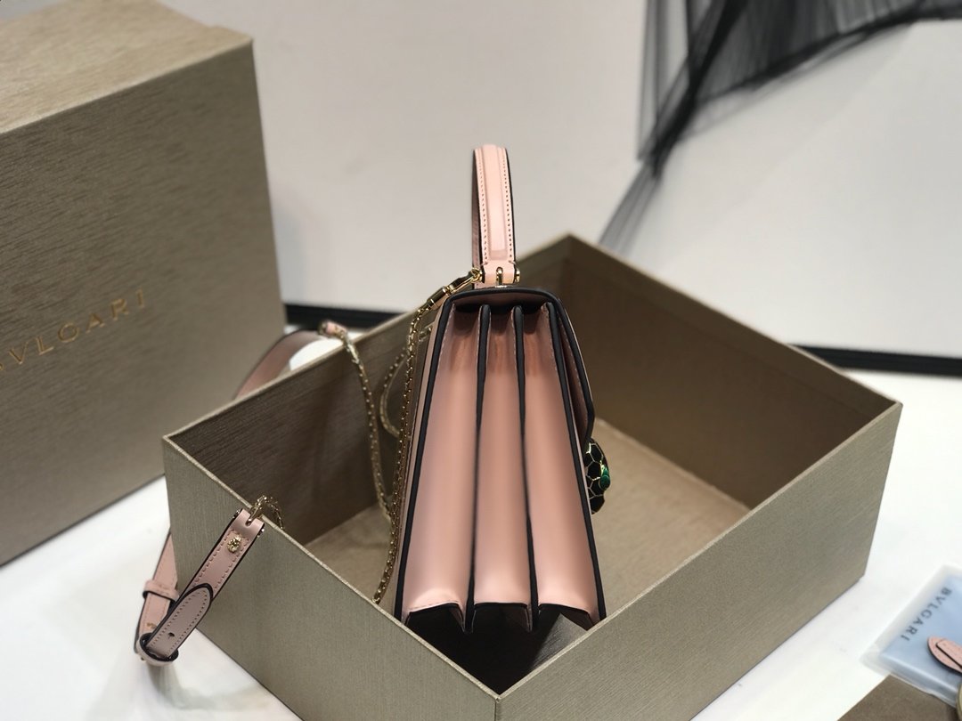 A Pocket-Sized Icon Discover the exquisite charm of the Bvlgari Serpenti Forever Mini Top Handle Bag. Sized at a petite 18cm, this bag (Ref: 282268) is the epitome of “elegant wildness.” Crafted from the finest Italian calfskin, it offers a luxurious touch and a structured silhouette that maintains its shape perfectly.