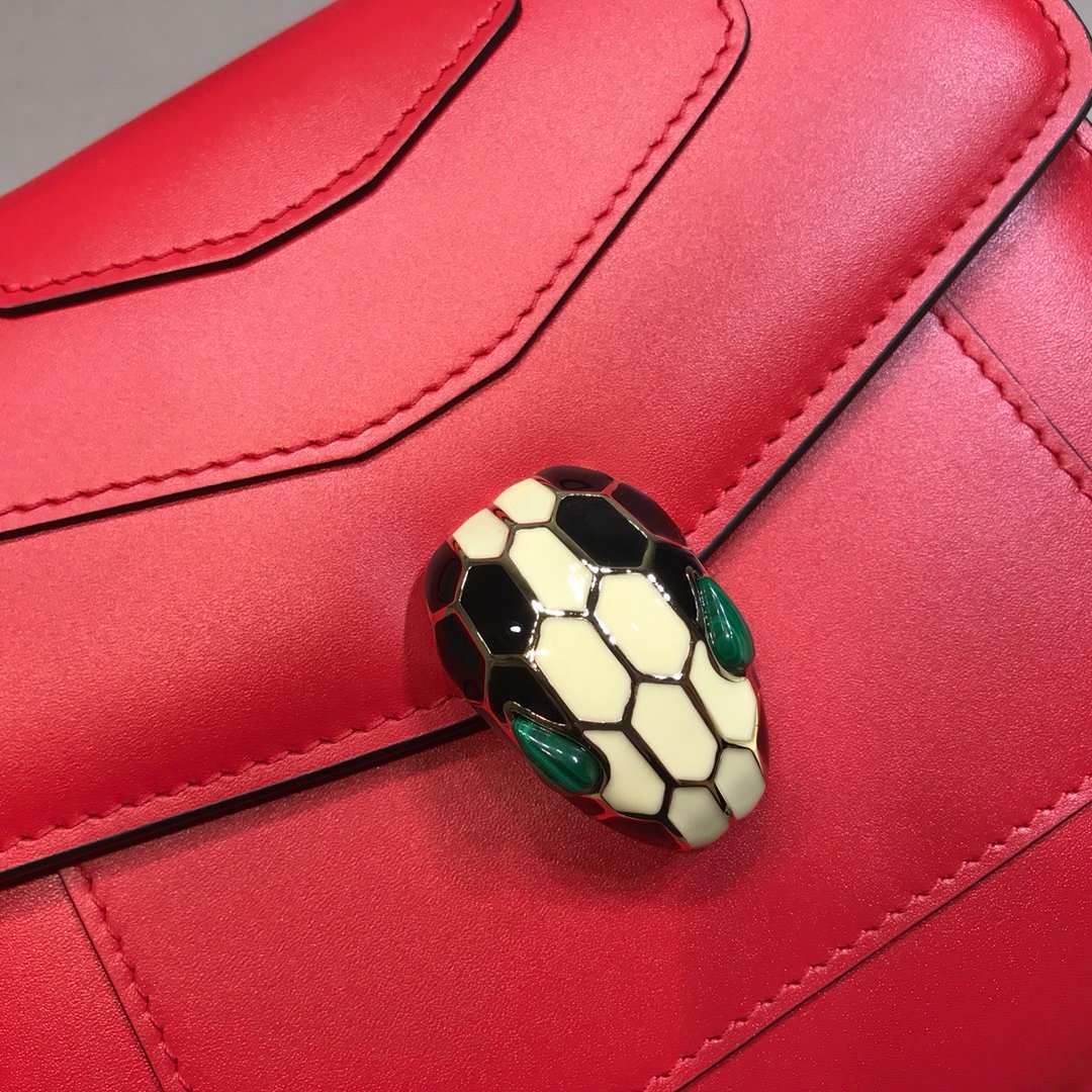 A Pocket-Sized Icon Discover the exquisite charm of the Bvlgari Serpenti Forever Mini Top Handle Bag. Sized at a petite 18cm, this bag (Ref: 282268) is the epitome of “elegant wildness.” Crafted from the finest Italian calfskin, it offers a luxurious touch and a structured silhouette that maintains its shape perfectly.