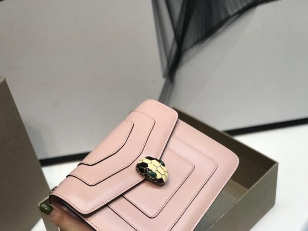 The “Snake Bone” Signature What sets this model apart is its unique strap architecture. It features a “Snake Bone” chain—a fluid, jewelry-like metal construction that mimics the spine of a serpent—connecting to a comfortable leather strap. This detail transforms the bag into a true accessory of adornment.