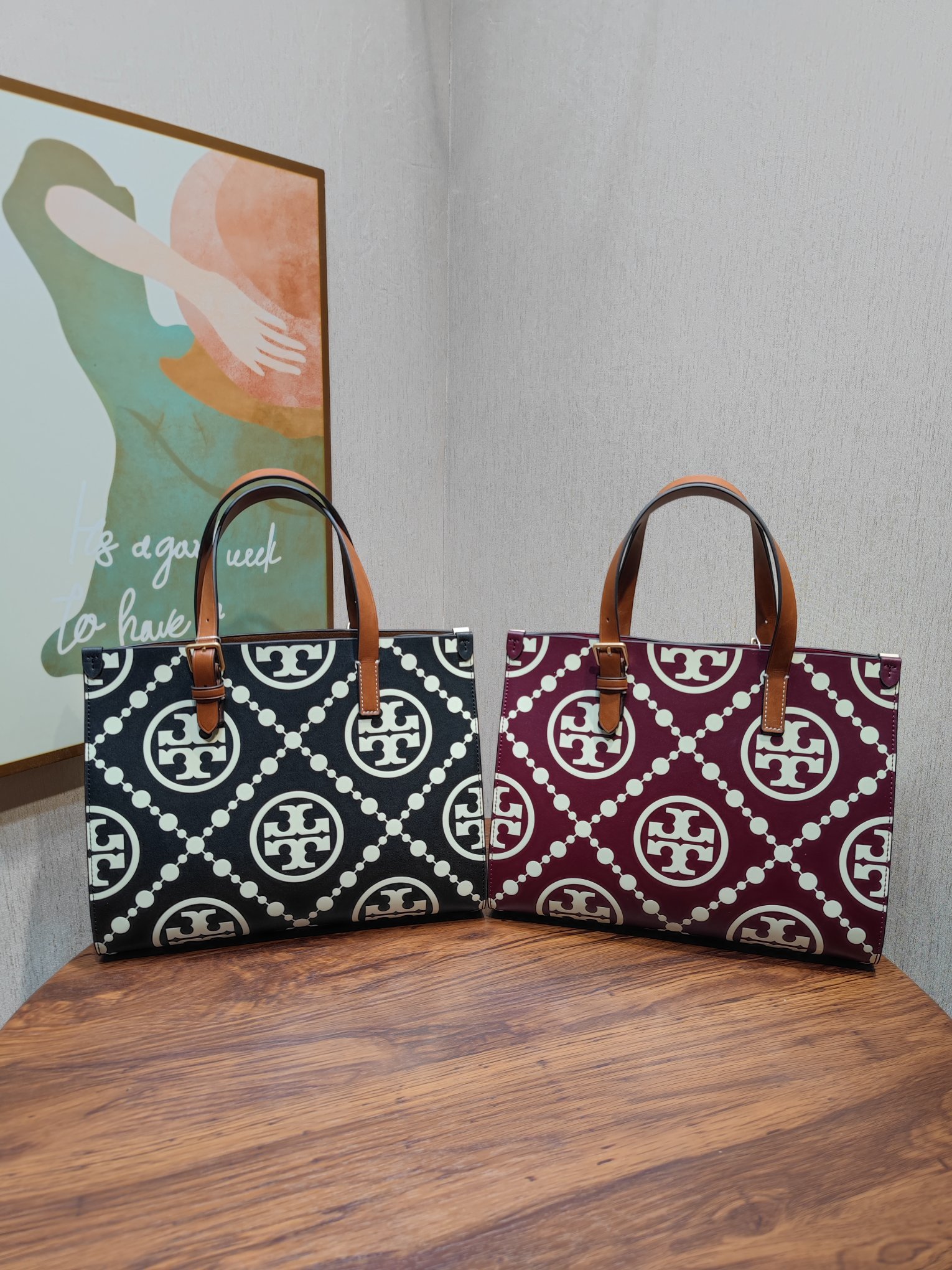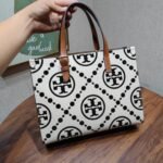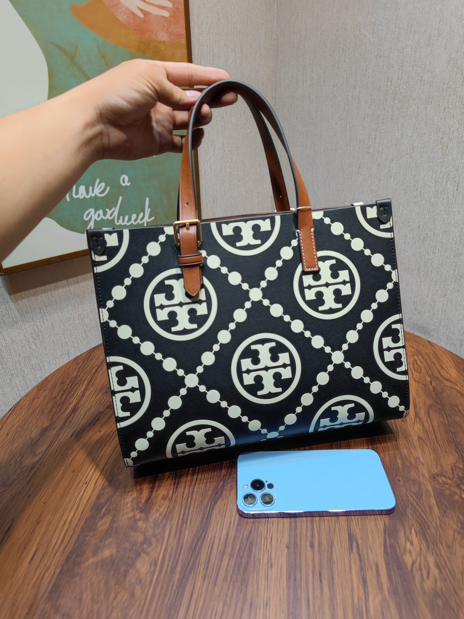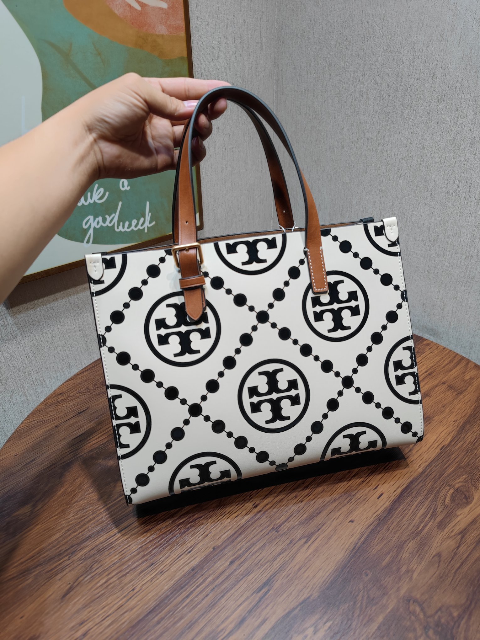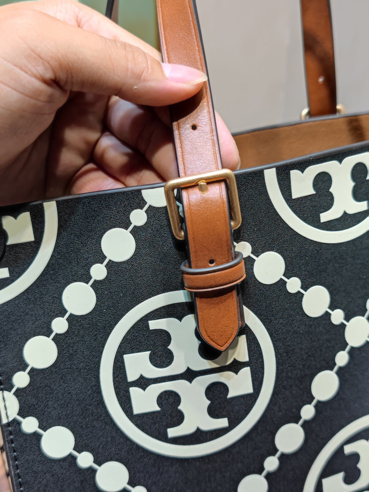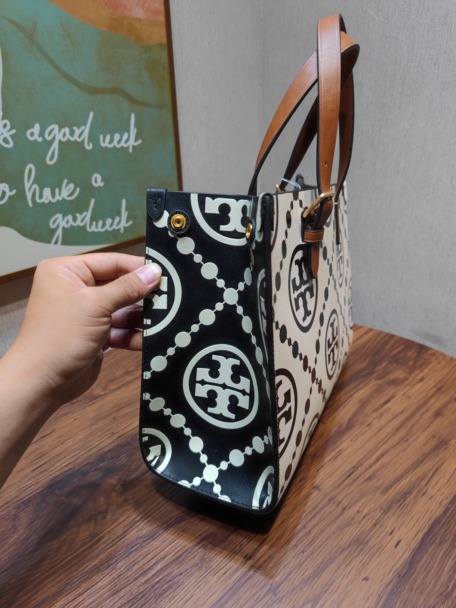 This sophisticated tote reimagines the classic logo pattern with a bold, modern aesthetic. Crafted from embossed leather in contrasting colors, it highlights the iconic T Monogram pattern with tactile depth.