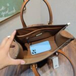Handles: Adjustable buckled leather top handles with a 13 cm drop, designed for hand or crook-of-arm carry.