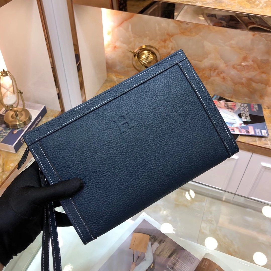 Understated Luxury & Daily Practicality The Hermès Men’s Compact Clutch (26cm) is the ultimate accessory for the modern man who values subtlety and quality. Featuring a sleek, minimalist design, this bag is defined by the central embossed “H” logo, offering a recognizable yet discreet brand statement.