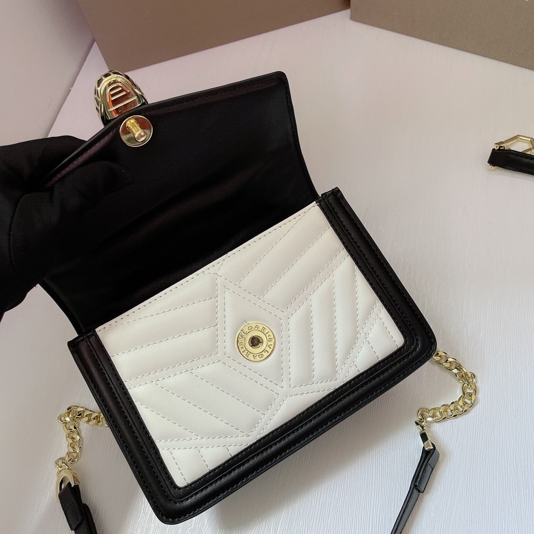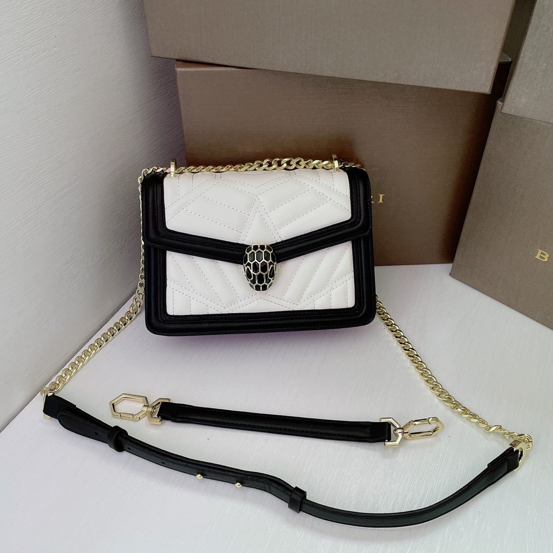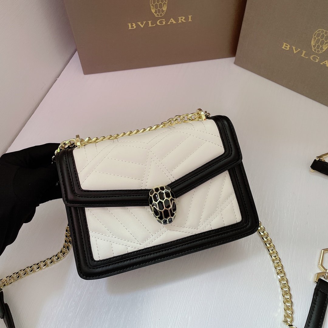 Iconic Details The front flap is secured by the legendary Snakehead closure, featuring matte black enamel scales and hypnotic black onyx eyes, acting as the jewel of the bag. The compact 20cm interior is perfectly sized for essentials, complete with a Bvlgari metal logo on the back and a personalized mirror inside.