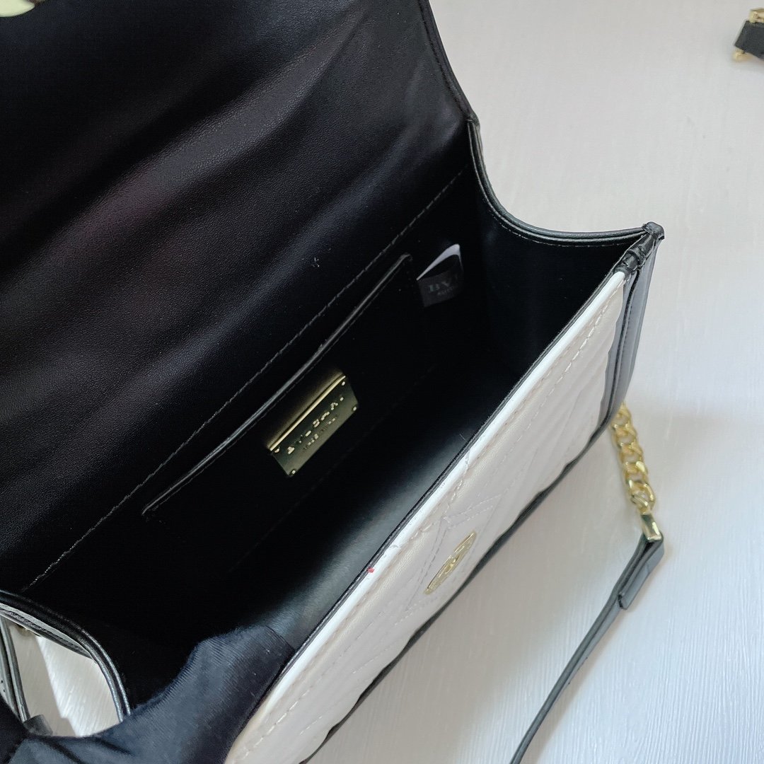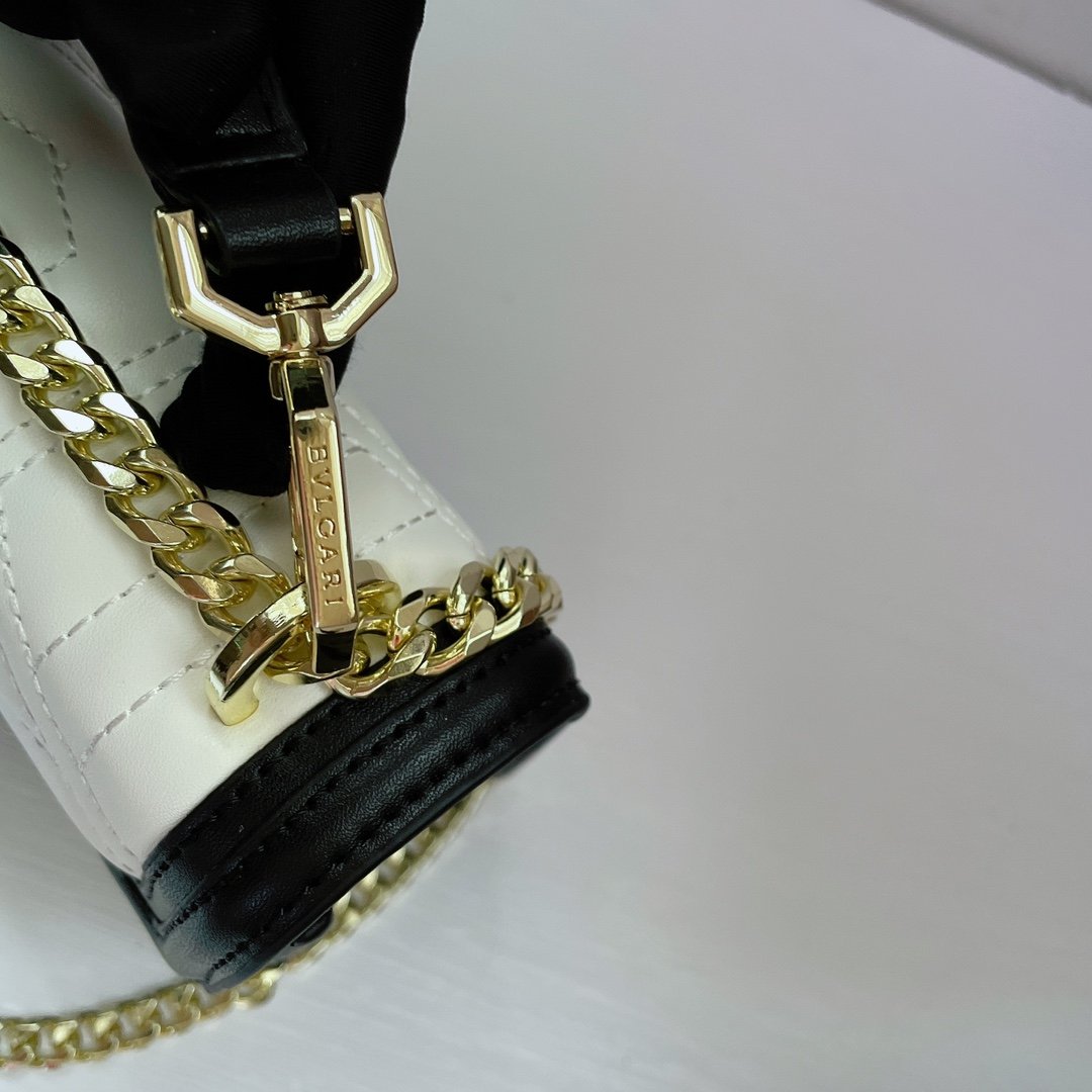 Strap/Handle: Features a chic “Gourmette” (thick woven) chain combined with an adjustable leather strap. Includes a detachable top handle for versatile styling.