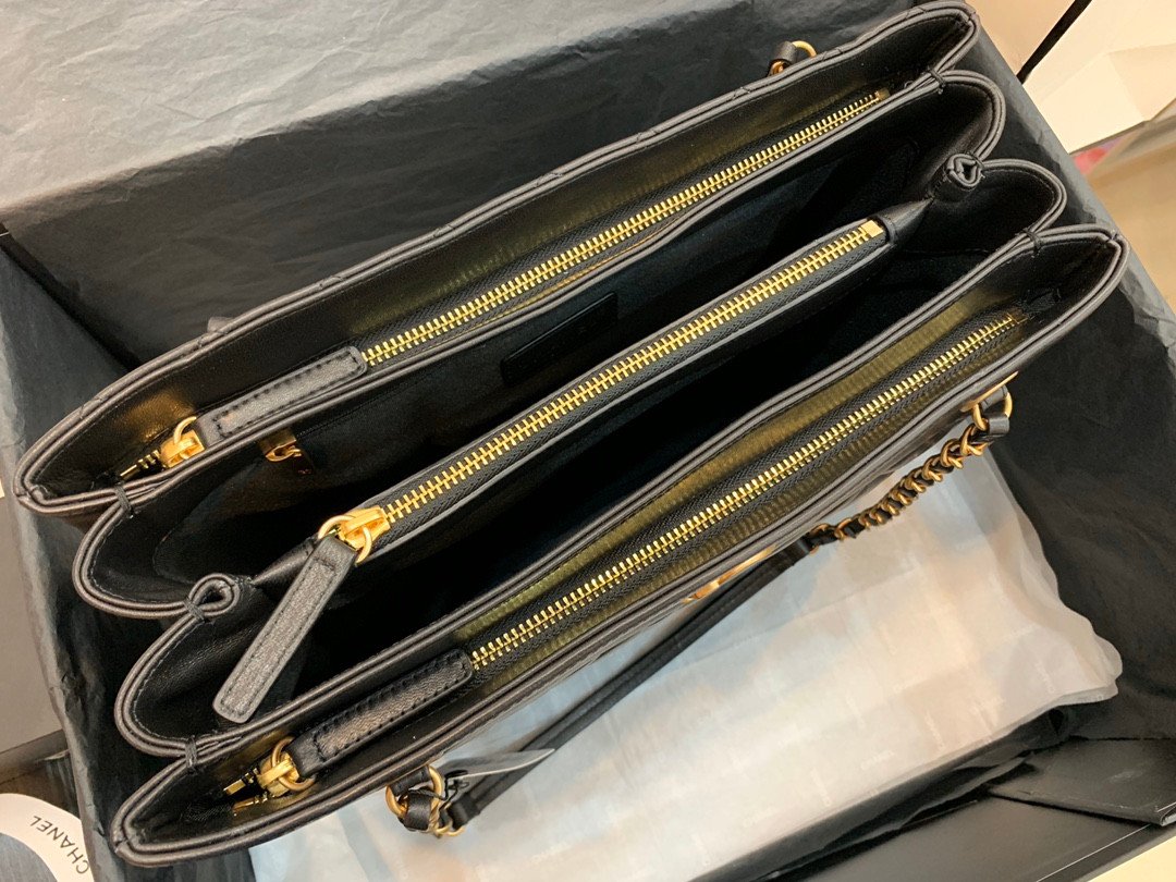 Unlike the rigid structure of older totes, this model is crafted from original imported soft lambskin, giving it a luxurious, pliable feel while maintaining a chic silhouette. The interior is incredibly functional, featuring a five-layer compartment design with an open top and multiple zippered sections to keep your belongings organized and secure.