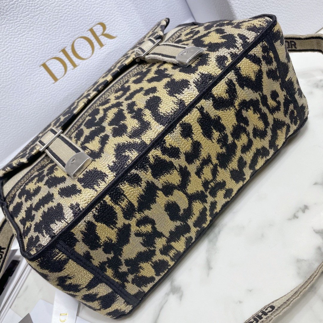 Designed by Maria Grazia Chiuri, the Diorcamp bag offers a casual and thoroughly modern update to the classic messenger silhouette. This striking piece is fully embroidered with the beige Mizza motif, a bold design that draws direct inspiration from a vintage leopard print found deep within the Dior archives.