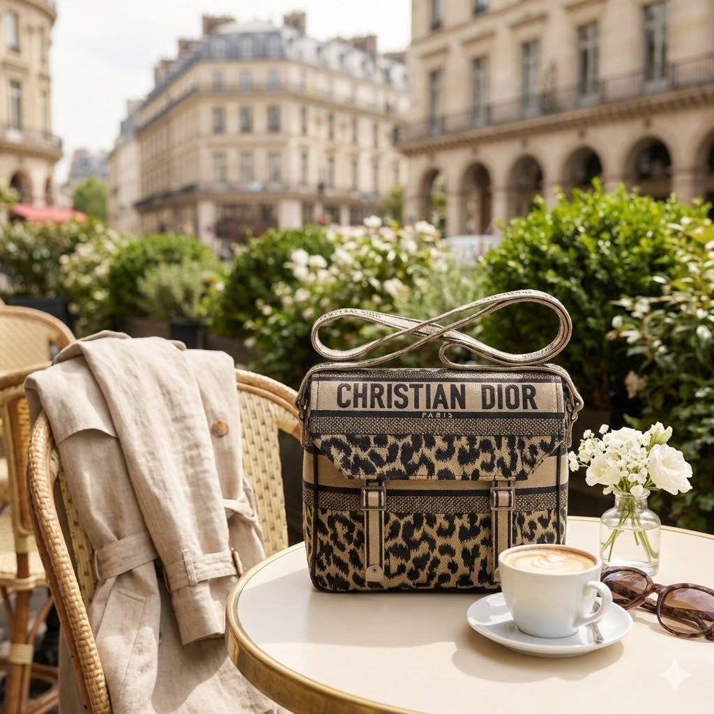 Iconic Branding: Distinctly marked with the “CHRISTIAN DIOR” logo across the front flap.