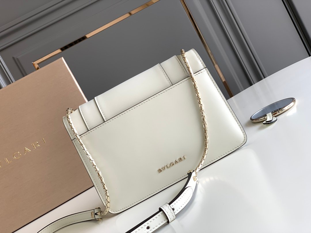 Urban Glamour in Pop Colors Add a touch of Roman vitality to your look with this Bvlgari Serpenti Forever Crossbody Bag. Crafted from exquisite Italian calfskin, this bag is defined by its clean lines and vibrant color options—available in a soft Periwinkle, pristine White, or energetic Daisy Yellow.